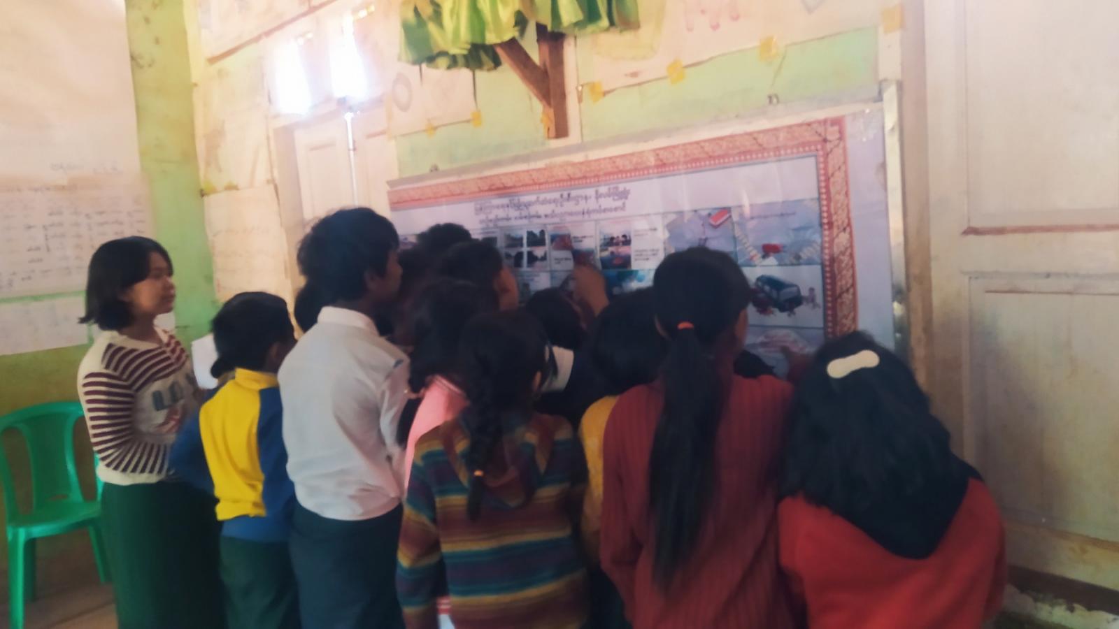 ဆက်လက်၍ စာကြည့်တိုက်လက်ထောက်-၃ ဒေါ်ဝေဝေအောင်က "စည်းကမ်းလိုက်နာ ဘေးကင်းကွာ"အသိပညာပေးပုံပြင်ကိုဟောပြောခဲ့ပြီး ယာဉ်စည်းကမ်း/လမ်းစည်းကမ်း နံရံကပ်စာစောင်ကို ကျောင်းသား/ကျောင်းသူများက စိတ်ပါဝင်စားစွာ ကြည့်ရှုခဲ့ကြကြောင်း သိရသည်။