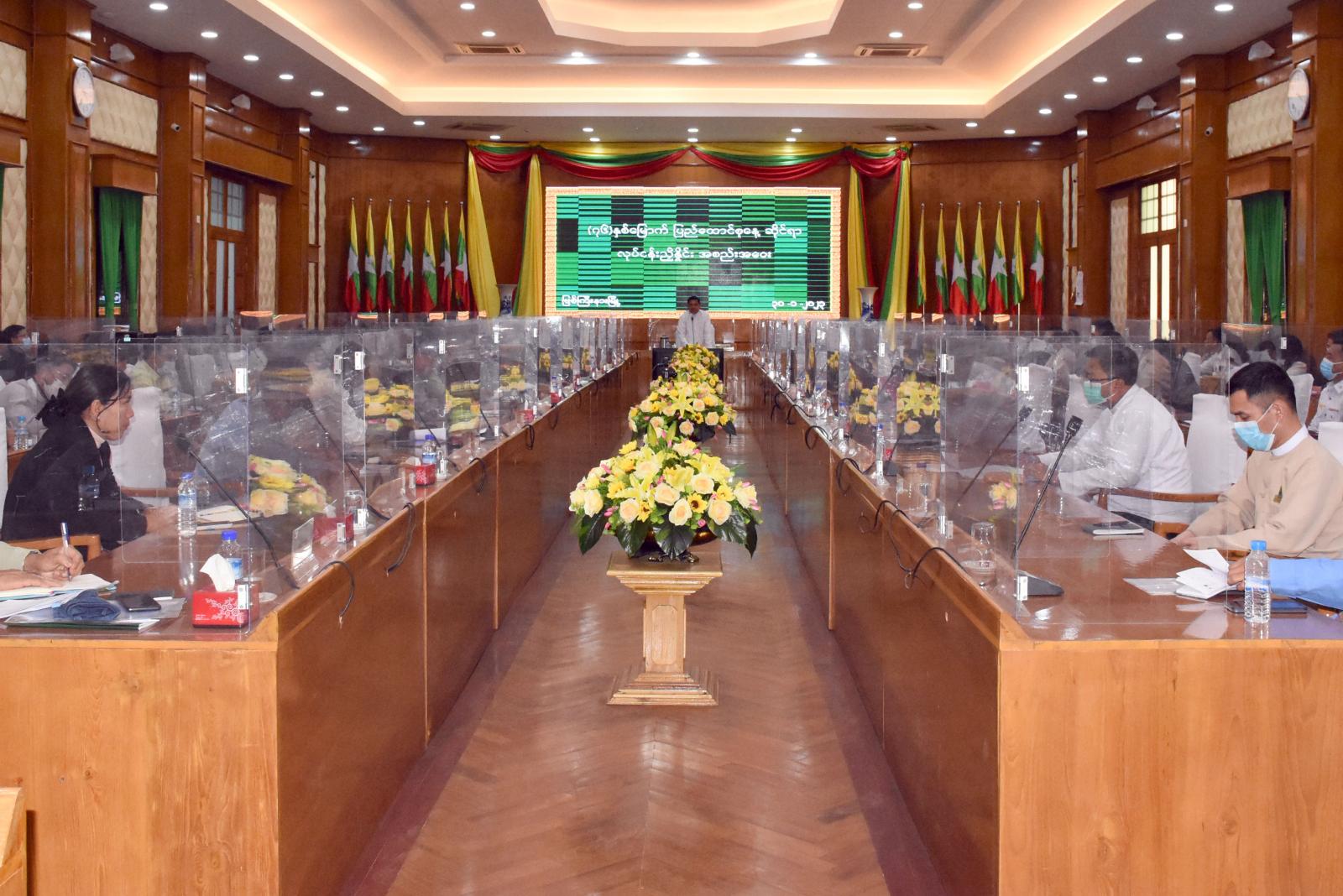 ထို့နောက် တက်ရောက်လာကြသည့် ပြည်နယ်အစိုးရအဖွဲ့ဝင် ဝန်ကြီးများ၊ ပြည်နယ်အဆင့် ဌာနဆိုင်ရာ တာဝန်ရှိသူ များက (၇၆)နှစ်မြောက် ပြည်ထောင်စုနေ့ အထိမ်းအမှတ် ကျင်းပပြုလုပ်သွားမည့် နိုင်ငံတော်အလံတင် အခမ်းအနား၊ သဝဏ်လွှာဖတ်ပွဲ၊ အထိမ်းအမှတ် ပြိုင်ပွဲနှင့် အားကစားပွဲများ ကျင်းပပြုလုပ်နိုင်ရေး ဦးစီးကော်မတီနှင့် ဆပ်ကော်မတီ အလိုက် လုပ်ငန်းတာဝန်များကို ဖွဲ့စည်းဆောင်ရွက်ထားရှိမှု အခြေအနေများ၊ နေပြည်တော်တွင် ကျင်းပပြုလုပ်မည့် ဂုဏ်ပြု ဖျော်ဖြေပွဲနှင့် ရန်ကုန်တိုင်းဒေသကြီးတွင် ပြည်နယ်ကိုယ်စားပြု ပြခန်းနှင့် ရိုးရာအစားအစာ အရောင်းပြခန်းများ ခင်းကျင်းပြသနိုင်ရေးအတွက် ဆောင်ရွက်သွားမည့် လုပ်ငန်းအစီအစဉ်များနှင့် သက်ဆိုင်ရာကဏ္ဍအလိုက် ကြိုတင်စီမံ ဆောင်ရွက်သွားရမည့်ကိစ္စရပ်များ၊ ရန်ပုံငွေသုံးစွဲသွားမည့် ကိစ္စရပ်များကို အသီးသီးတင်ပြဆွေးနွေးကြသည်။
