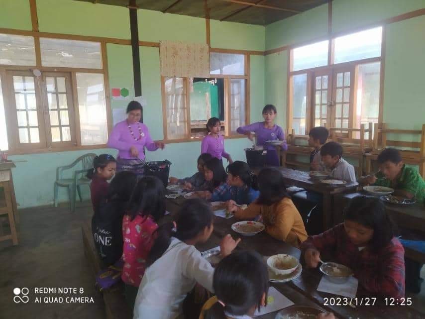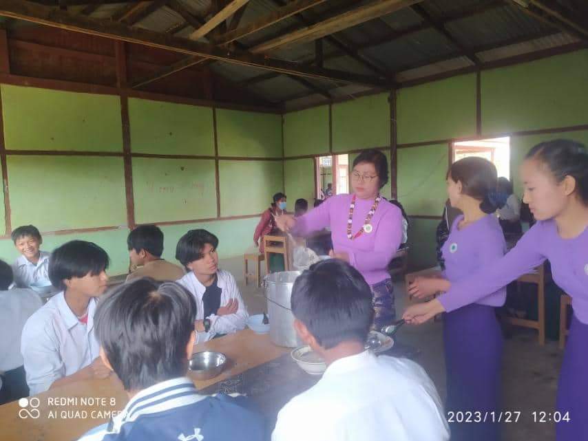 ကချင်ပြည်နယ်၊ ပူတာအိုခရိုင်၊ ဆွမ်ပရာဘွမ်မြို့တွင် ကျောင်းသား၊ ကျောင်းသူများနှင့် သက်ကြီးရွယ်အိုများအား အာဟာရဖြည့် အစားအစာ ကြက်သားဆန်ပြုတ် တိုက်ကျွေးခြင်းကို ဇန်နဝါရီ ၂၇ ရက်နေ့ နေ့လယ် ၁၁နာရီခွဲအချိန်က အခြေခံပညာအထက်တန်းကျောင်း၌ ဆောင်ရွက်ခဲ့ကြောင်း သိရသည်။