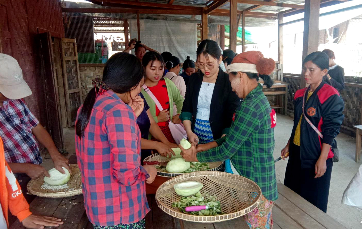 ကချင်ပြည်နယ် မိုးညှင်းခရိုင် မိုးညှင်းမြို့တွင် ခရိုင်အသေးစား စက်မှုလက်မှုလုပ်ငန်းဦးစီးဌာနမှ ကျင်းပပြုလုပ်သည့် တန်းဖိုးမြှင့် စားသောက်ကုန် ထုတ်လုပ်မှုနည်းပညာသင်တန်းကို ယနေ့နံနက်(၁၀)နာရီက အောင်သပြေရပ်ကွက်(၃)ရှိ လွဒ်အောင်(စစ်ဘေးရှောင်)စခန်း၌ ကျင်းပသည်။