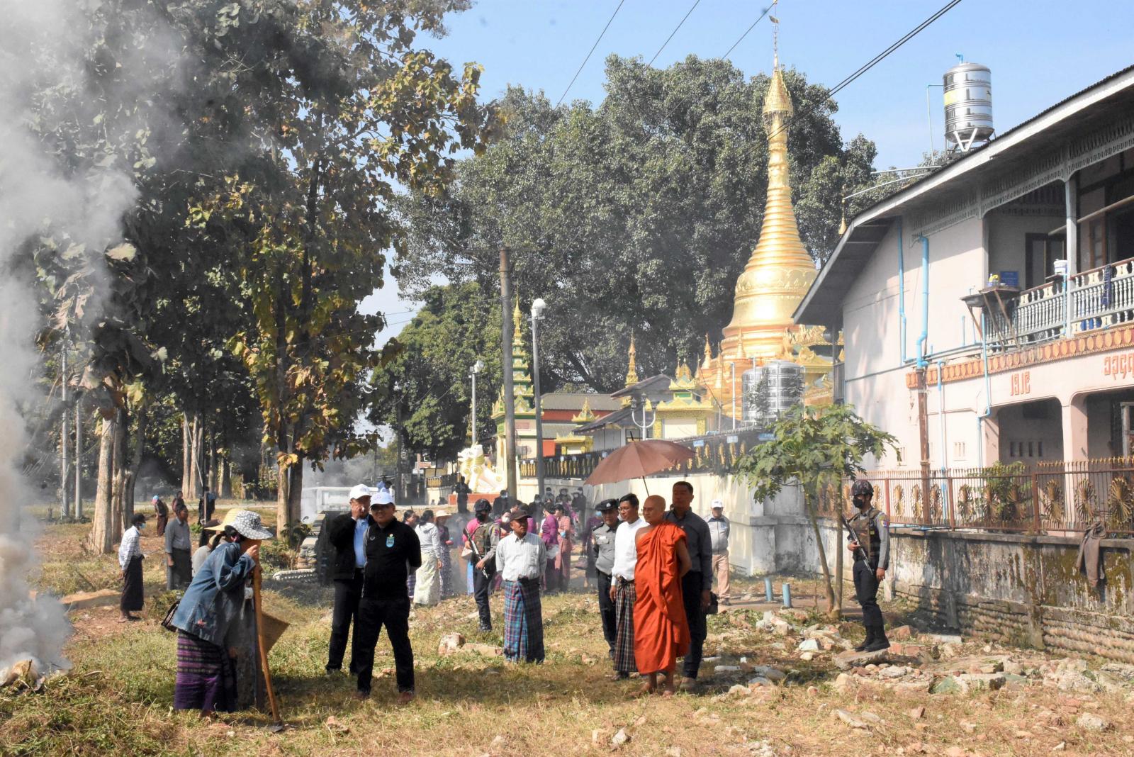ထိုမှတစ်ဆင့် ဝိုင်းမော်မြို့နယ် မိုင်းနားကျေးရွာအုပ်စုအတွင်း ရွှေမိုးတောင် ဆုတောင်းပြည့် စေတီတော်ပုရဝဏ်နှင့် တောင်အတက်/အဆင်း လမ်းမတစ်လျှောက်တို့တွင် မြို့နယ်အဆင့်ဌာန ဆိုင်ရာများ၊ အရပ်ဘက်လူမှုကူညီရေးအသင်း အဖွဲ့များ၏ စုပေါင်းသန့်ရှင်းရေး ဆောင်ရွက်နေမှုကို လည်းကောင်း၊ မြစ်ကြီးနားမြို့ ပြည်သူ့ဆေးရုံကြီးဝင်းအတွင်း အများပြည်သူ အပန်းဖြေနေရာများ၌ စုပေါင်းသန့်ရှင်းရေးလုပ်ငန်းများ ဆောင်ရွက်နေမှုကို လည်းကောင်း၊ ရန်ကြီးအောင် ရပ်ကွက်အတွင်း ရှိ သမိုင်းဝင်အံ့တော်ရှင်စေတီတော်ပုရဝုဏ်နှင့် စေတီတော်ဝင်းအတွင်းနှင့် အပြင်တို့တွင် လည်းကောင်း ဌာနဆိုင်ရာများ၊ စည်ပင်သာယာရေးအဖွဲ့များ၊ နယ်မြေခံတပ်မတော်သား မိသားစုများ၊ အရပ်ဖက်လူမှုကူညီရေးအသင်း အဖွဲ့များ၏ စုပေါင်းသန့်ရှင်းရေးလုပ်ငန်းများ ဆောင်ရွက်နေမှုကို လှည့်လည်ကြည့်ရှုအားပေးခဲ့ကြပြီး မုန့်နှင့် ရေသန့်ဘူး များ၊ ထောက်ပံ့ငွေများ ထောက်ပံ့ပေးအပ်ခဲ့ကြောင်း သိရသည်။