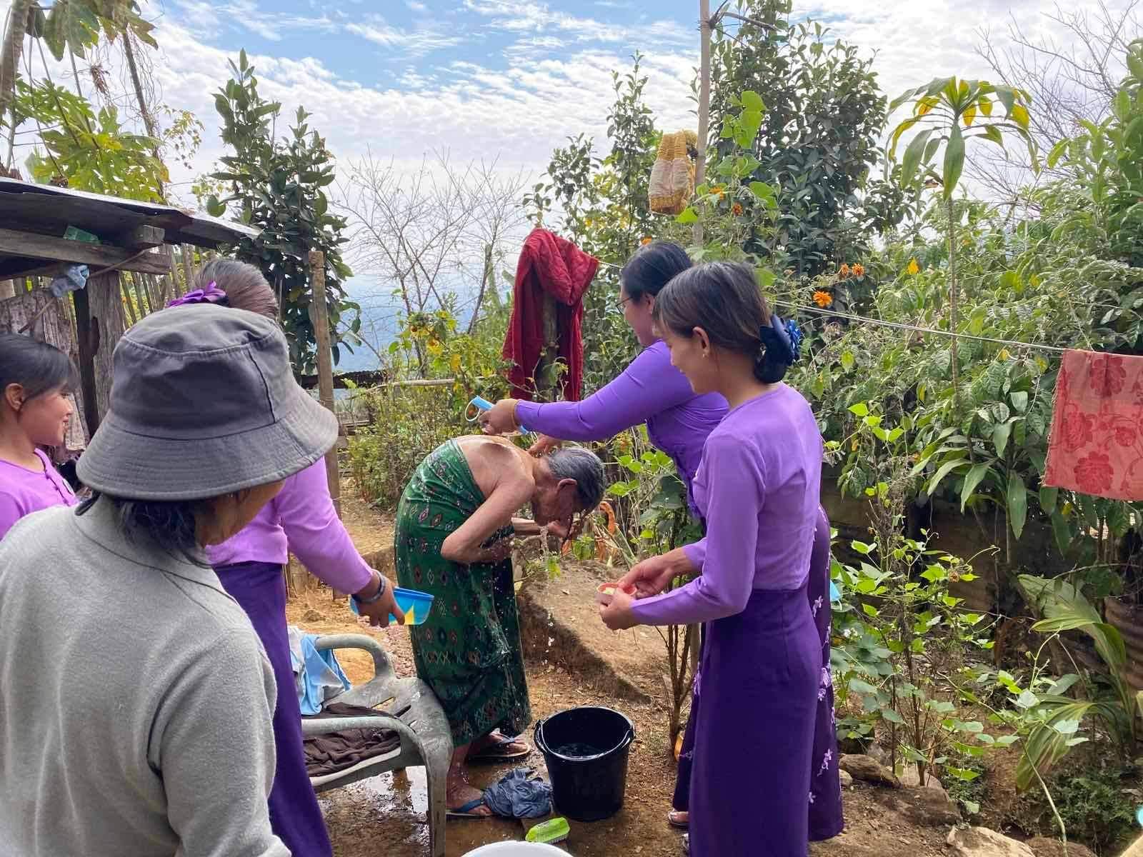 ထို့အပြင် ပူးပေါင်းအဖွဲ့များက ဆွမ်ပရာဘွမ်မြို့ ကဘရန်ခူးရပ်ကွက်တွင် နေထိုင်သူအသက်၉၀နှစ်ကျော် အဘွားအိုတစ်ဦးအား ခေါင်းလျှော်၊ ရေချိုးပေးခြင်းဖြင့် ကုသိုလ်ယူခဲ့ကြောင်း သိရသည်။