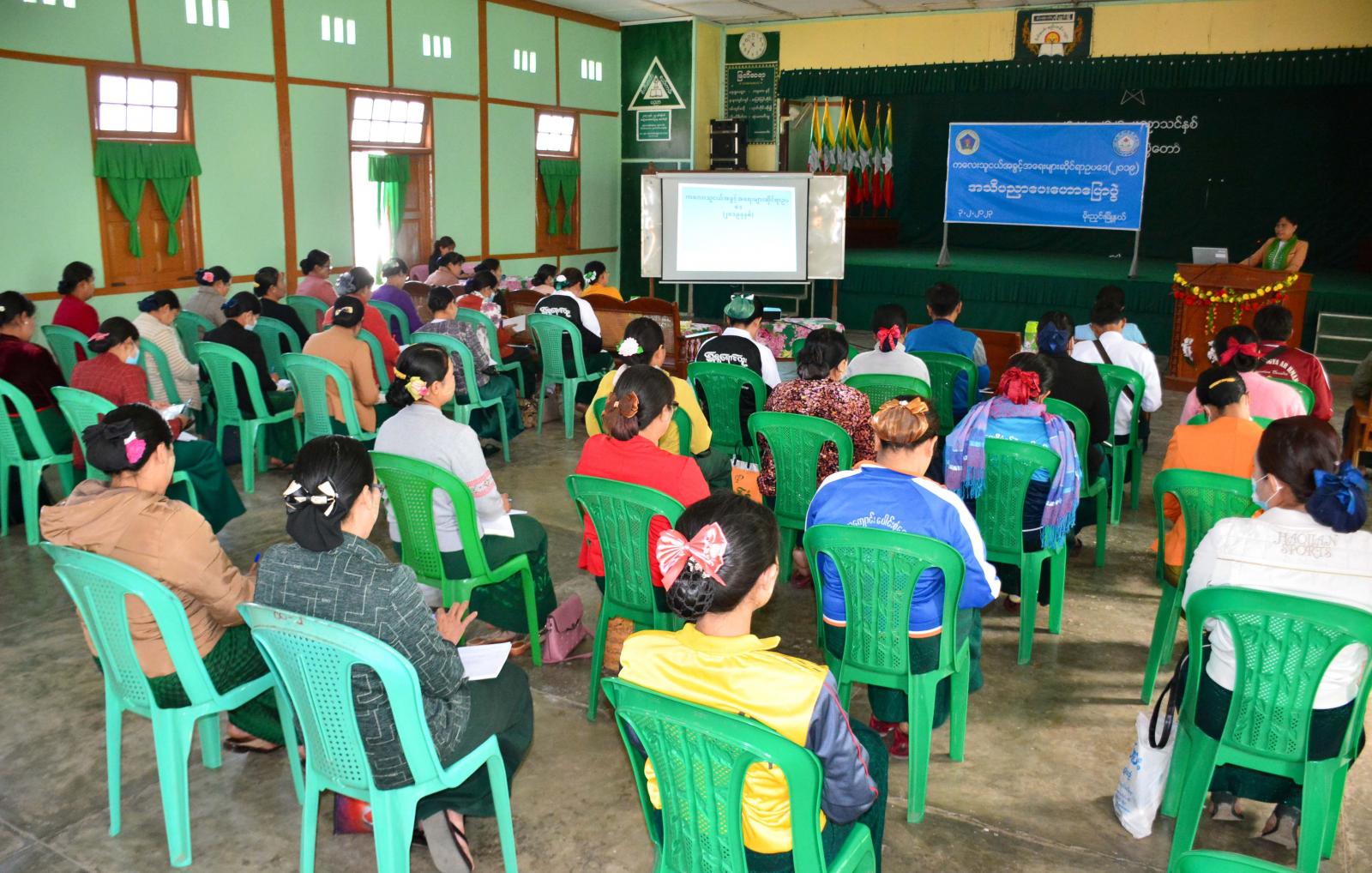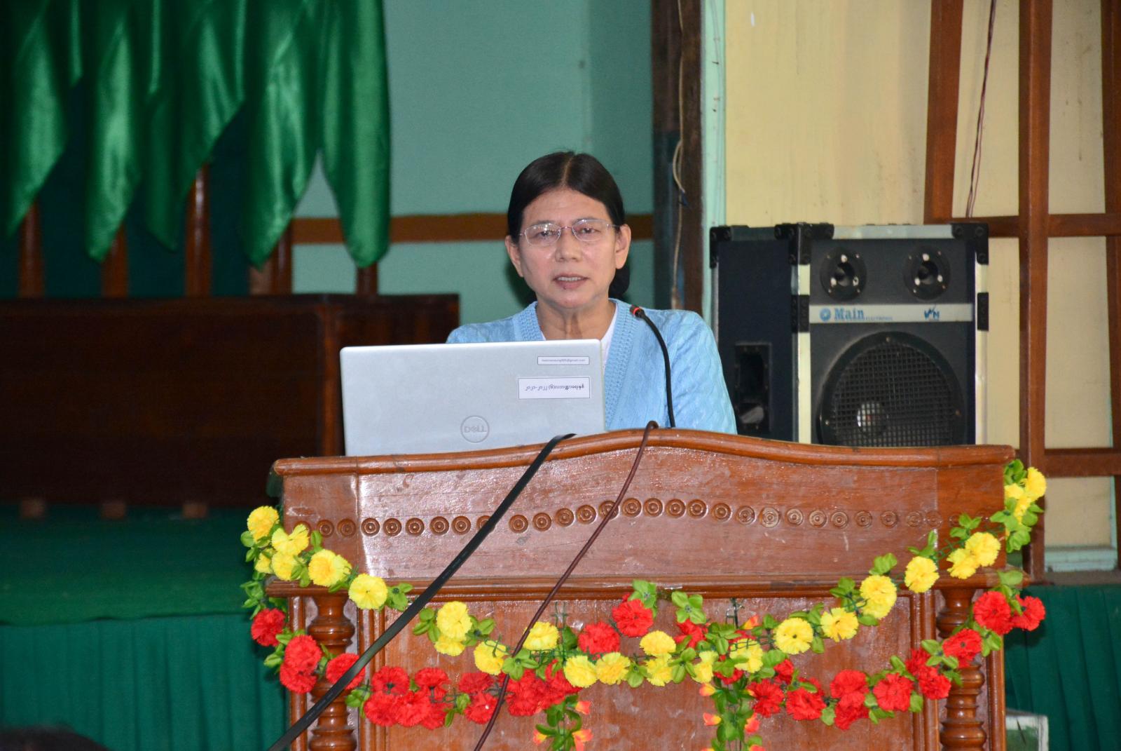 ဆက်လက်၍ ခရိုင်လူမှုဝန်ထမ်းဦးစီးဌာနမှ ခရိုင်ဦးစီးမှူး ဒေါ်နွယ်နွယ်အောင်က ကလေးသူငယ် အခွင့်အရေးများဆိုင်ရာဥပဒေများ၊ အသက်အရွယ်နှင့်စပ်လျဉ်းသည့် ပြဌာန်းချက်များ၊ သင်တန်းကျောင်းပရဟိတဂေဟာနှင့် ယာယီစောင့်ရှောက်ရေးဂေဟာများ၊ ကလေးသူငယ်အပေါ် အကြမ်းဖက်မှုမှ ကာကွယ်စောင့်ရှောက်ခြင်းများ၊ ကလေးသူငယ်အခွင့် အရေးများဆိုင်ရာ ဥပဒေပါ ပြစ်မှုနှင့် ပြစ်ဒဏ်များစသည်တို့ကို ဟောပြောခဲ့သည်။