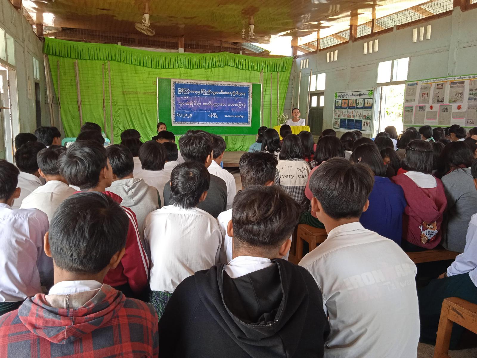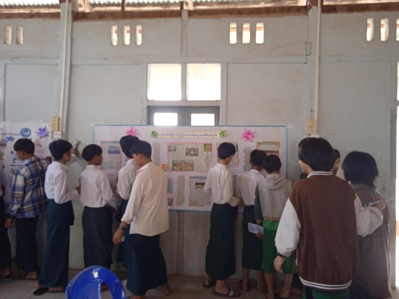 စာဖတ်ရှိန်မြှင့်တင်ရေး နယ်လှည့်ကွင်းဆင်းအသိပညာပေးလုပ်ငန်းတွင်အသိပညာဗဟုသုတ များစွာရရှိစေမည့် သုတ၊ ရသစာအုပ်စာစောင်များကိုလည်း ဖြန့်ဝေဖတ်ရှုစေခဲ့ပြီး နိုင်ငံတော်အကြီး အကဲများ၏ တိုင်းကျိုးပြည်ပြု မှတ်တမ်းဓါတ်ပုံများ၊ ပြည်ထောင်စုနေ့အကြောင်း အသိပညာပေး၊ လူကုန်ကူးမှုဆိုင်ရာ၊ မျောက်ကျောက်ရောဂါအန္တရာယ်ဆိုင်ရာ၊ သဘာဝဘေးအန္တရာယ်ကြိုတင်ကာကွယ်ရေး၊ ကိုဗစ်-၁၉ ရောဂါကြိုတင်ကာကွယ်ရေး၊ ကလေးအလုပ်သမား ပပျောက်ရေးအသိပညာပေး၊ မူးယစ်ဆေးဝါးအန္တရာယ်ဆိုင်ရာ၊ လူငယ်ဆိုင်ရာအသိပညာပေး နံရံကပ်စာစောင်များကိုပြသခဲ့ရာ ကျောင်းသားကျောင်းသူများ စိတ်ဝင်တစား လေ့လာကြည့်ရှု မှတ်သားခဲ့ကြကြောင်း သိရသည်။