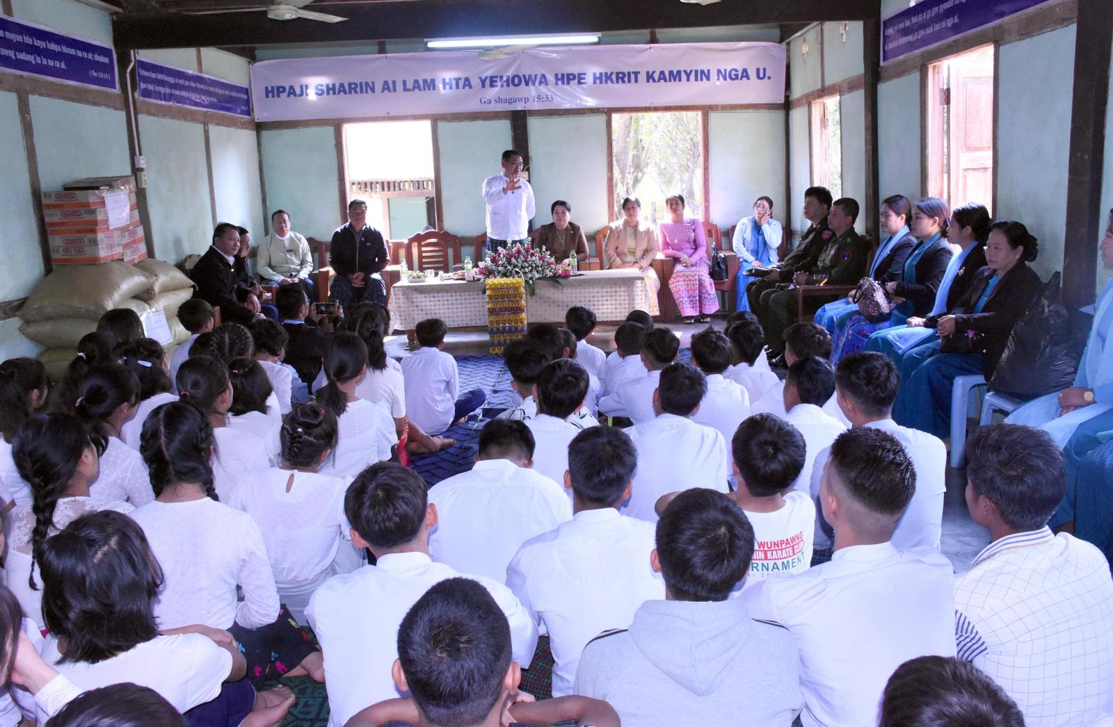 ရှေးဦးစွာ ပြည်နယ်ဝန်ကြီးချုပ်နှင့် ဇနီးဒေါ်နန်ဆိုင်းတို့သည် ပြည်နယ်အစိုးရအဖွဲ့ဝင် ဝန်ကြီးများ၊ ဌာနဆိုင်ရာတာဝန်ရှိသူ များနှင့်အတူ ဗန်းမော်မြို့ ညောင်ပင်ရပ်ကွက် ရောဘတ် နှစ်ခြင်းအသင်း တော်ရုံး၌ ဗန်းမော်ဇုံနယ် နှစ်ခြင်းအသင်းတော် တာဝန်ရှိသူများနှင့် တွေ့ဆုံပြီး သုဿန်မြေနေရာ ရရှိရေး၊ နေရပ်စွန့်ခွာပြည်သူများ နေထိုင်စားသောက်ရေးနှင့် ပြောင်းရွှေ့နေရာချထားရေး စသည့် ကိစ္စရပ်များနှင့် စပ်လျဉ်း၍ ရင်းရင်းနှီးနှီးတွေ့ဆုံဆွေးနွေးခဲ့ကြကာ လိုအပ်သည် များကို ခရိုင်တာဝန်ရှိသူများနှင့် ကွင်းဆင်းစိစစ်တင်ပြနိုင်ရေး ပေါင်းစပ်ဆောင်ရွက်ပေးခဲ့သည်။ ဆက်လက်၍ အဆိုပါ နှစ်ခြင်းအသင်းတော်ဝင်း အတွင်းရှိ ရောဘတ်မိဘမဲ့ဂေဟာ၌ ဂေဟာတာဝန်ရှိသူများ၊ ကလေးများ နှင့် တွေ့ဆုံကာ ဂေဟာအတွက် လိုအပ်ချက်ရှိသည်များနှင့် တက္ကသိုလ်ဝင်တန်း ဖြေဆိုမည့် ကျောင်းသား/ကျောင်းသူ များအား တွေ့ဆုံ အားပေးကာ ဂေဟာအဝင်လမ်း ခင်းပေးနိုင်ရေး၊ နေထိုင်စားသောက်မှုနှင့် လိုအပ်သည်များကို ညှိနှိုင်းပေါင်းစပ် ဆောင်ရွက်ပေးခဲ့ပြီး ဂေဟာအတွက် ထောက်ပံ့ငွေများနှင့် ဆန်အိတ် ၁၀ အိတ်၊ ခေါက်ဆွဲခြောက်များနှင့် ကြက်ဥများကို ထောက်ပံ့ပေးအပ်ခဲ့ကြကာ ကလေးများအတွက် မုန့်နှင့် အချိုရည်ဘူးများ ဝေငှကျွေးမွေးခဲ့ကြသည်။