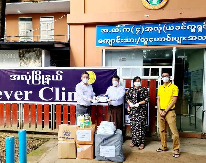ရန်ကုန်အနောက်ပိုင်းခရိုင်၊ အလုံမြို့ ကိုဗစ်-၁၉ ရောဂါ ကာကွယ်၊ ထိန်းချုပ်၊ ကုသလုပ်ငန်းများနှင့် ဖျားနာကုသအခမဲ့ဆေးခန်း (Fever Clinic)တို့တွင် အသုံးပြုရန်အတွက် အလှူငွေနှင့် ကာကွယ်ရေးသုံး ပစ္စည်းများကို ယနေ့ နံနက်ပိုင်းက လာရောက်ထောက်ပံ့လှူဒါန်းခဲ့ကြောင်း သိရသည်။