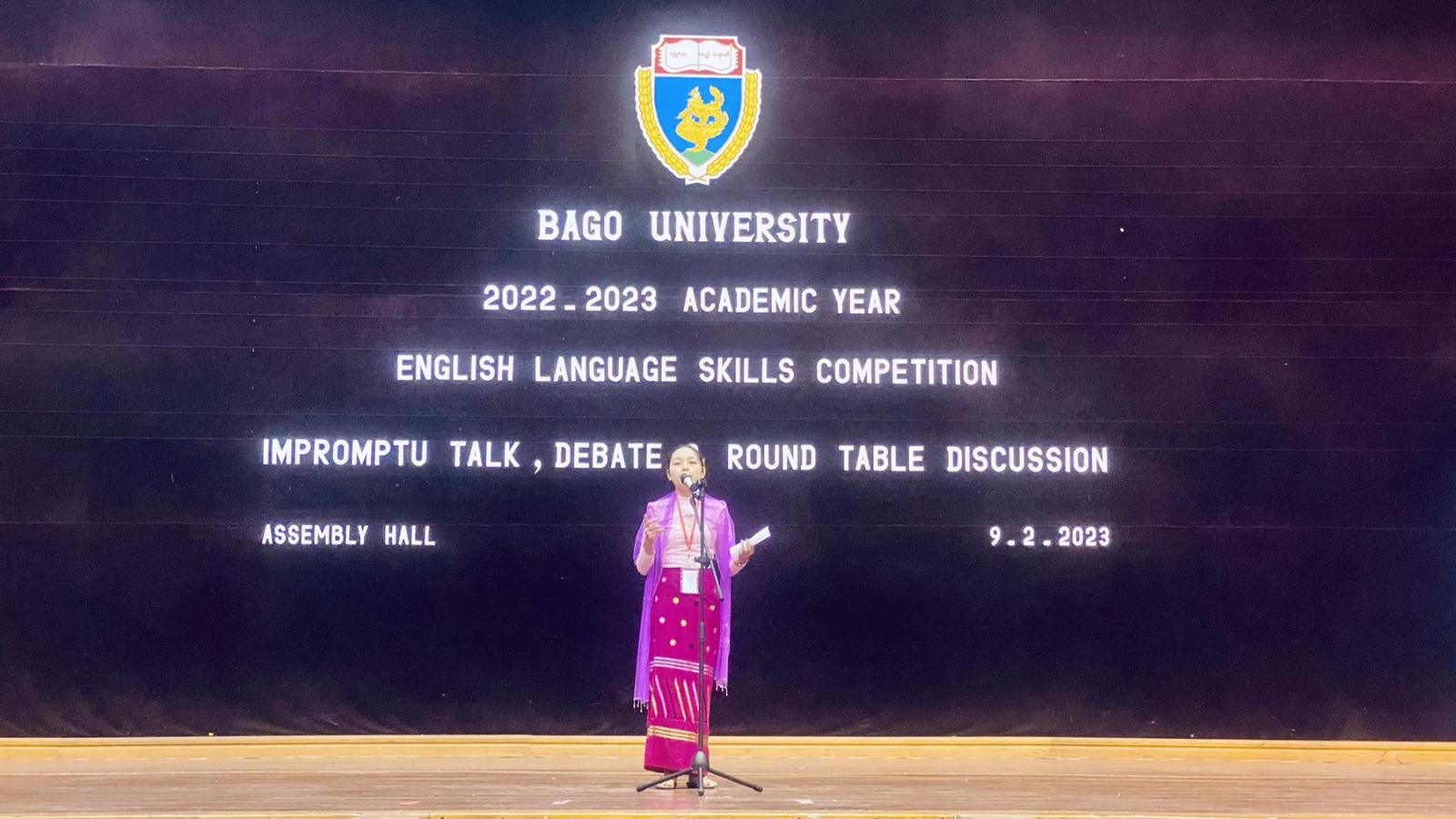 ပဲခူးတက္ကသိုလ် ၂၀၂၂-၂၀၂၃ ပညာသင်နှစ် မေဂျာပေါင်းစုံ ကျပန်း/စကားရည်လု/ စကားဝိုင်းဆွေးနွေးပွဲ(အင်္ဂလိပ်စာစွမ်းရည်)ပြိုင်ပွဲ အခမ်းအနားကို ယနေ့နံနက် ၉ နာရီက ပဲခူးတက္ကသိုလ်စုဝေးခန်းမ၌ကျင်းပခဲ့ရာ ပဲခူးတိုင်းဒေသကြီးအစိုးရအဖွဲ့ လူမှုရေးရာဝန်ကြီး ဦးအောင်မင်း တက်ရောက်ခဲ့သည်။