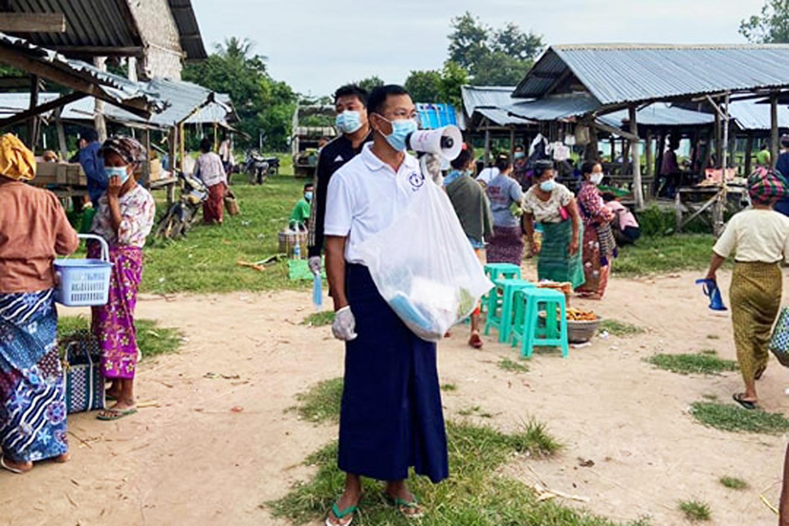 ကိုဗစ်-၁၉ ရောဂါဖြစ်ပွားနေမှုအခြေအနေနှင့် ကျန်းမာရေး ညွှန်ကြားချက်များအား လိုက်နာ ဆောင်ရွက်စေရန် ဟန်းစပီကာဖြင့် ဈေးအတွင်း လှည့်လည်၍ အသိပေး ကြေညာခြင်း၊ နှာခေါင်းစည်း (Mask) (၁၀၀၀)ခု(အခမဲ့)ဖြန့်ဝေပေးခြင်းနှင့် လက်သန့်ဆေးရည်(Hand Spray) ဖျန်းပေးခြင်း များ ဆောင်ရွက်ခဲ့ကြောင်း သိရသည်။