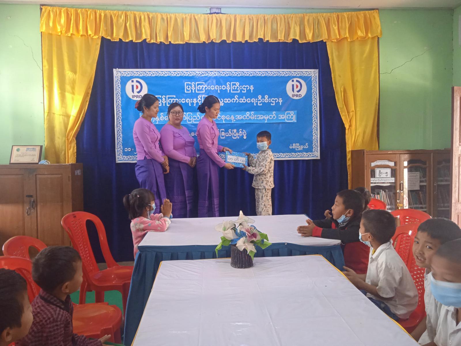 ပြိုင်ပွဲတွင် မြို့နယ်မိခင်နှင့် ကလေးစောင့်ရှောက်ရေး အသင်းအဖွဲ့ဝင်များနှင့် မြို့နယ်အမျိုးသမီးရေးရာအဖွဲ့ဝင်များ လာရောက်ကြည့်ရှုအားပေးကာ ဆုရရှိသူများကို မြို့နယ်ဦးစီးအရာရှိ ဒေါ်မြသက်ဦးက ဆုများချီးမြှင့်ခဲ့ပြီး ပြိုင်ပွဲဝင်သည့် ကျောင်းသား၊ ကျောင်းသူများအား အမှတ်တရ လက်ဆောင်များ ပေးအပ်ခဲ့ကြောင်း သိရသည်။