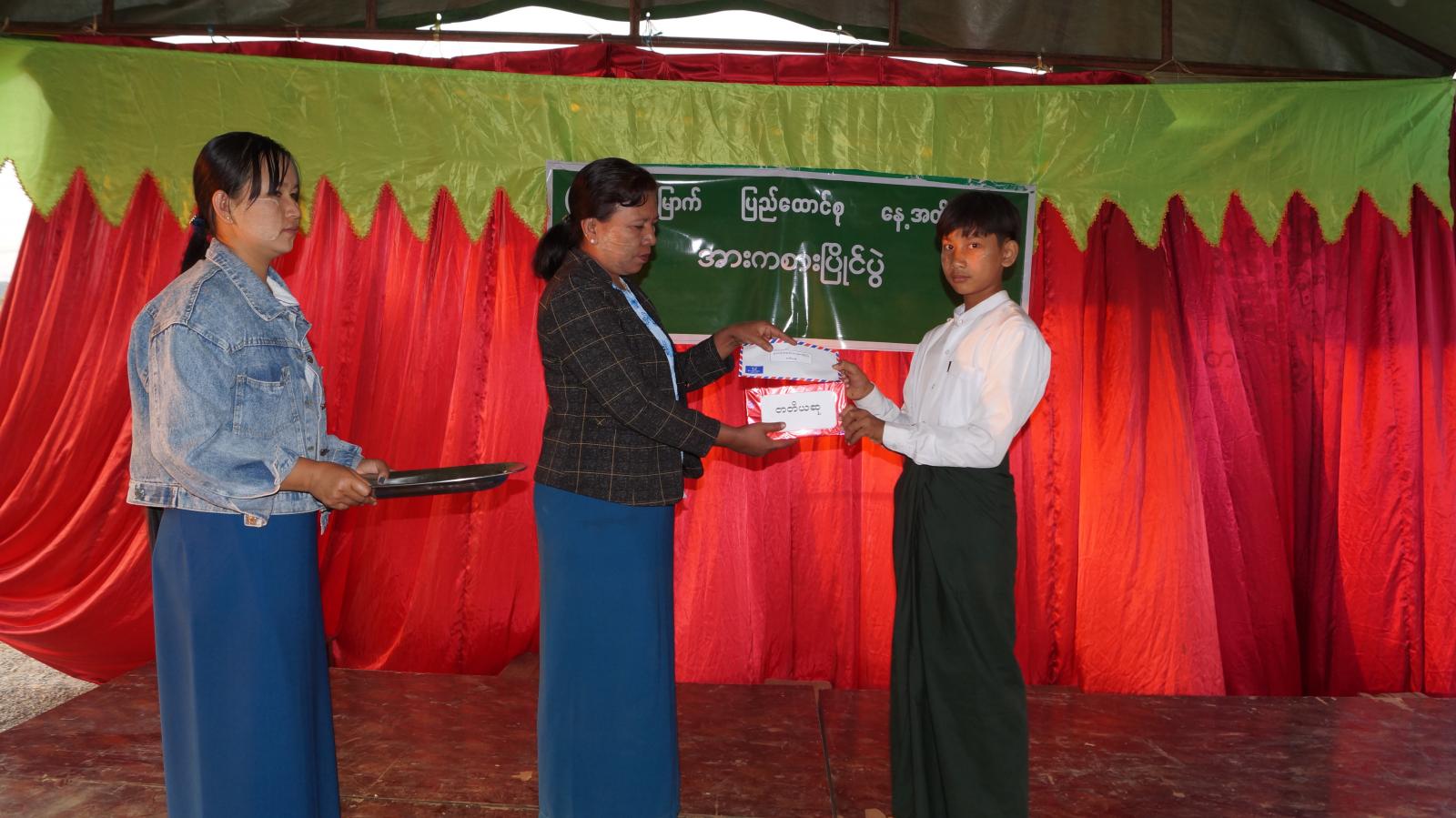 ယင်းနောက် ပြိုင်ပွဲအသီးသီးတွင် ပထမ၊ ဒုတိယ၊ တတိယဆုရရှိကြသော ပြိုင်ပွဲဝင်များအား မြို့အုပ်ချုပ်ရေးမှူးဦးမင်းသူနှင့် ဌာနဆိုင်ရာအကြီးအကဲများ၊ ရပ်ကွက်အုပ်ချုပ်ရေးမှူးများက ဆုငွေများအသီးသီး ချီးမြှင့်ပေးခဲ့ကြောင်း သိရသည်။