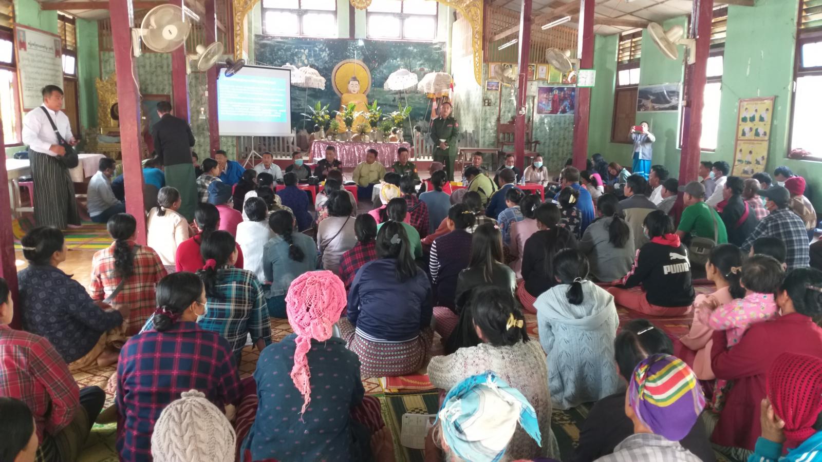 ရှေးဦးစွာ မြို့နယ်စီမံအုပ်ချုပ်ရေးအဖွဲ့ဝင် ဗိုလ်မှူးမိုးဝင်းထက်က နိုင်ငံတော်စီမံအုပ်ချုပ်ရေးကောင်စီ၏ ရှေ့လုပ်ငန်းစဉ်(၅)ရပ်နှင့် နိုင်ငံတော်၏လက်ရှိအခြေအနေ ဒေသနေပြည်သူများ၏ ပညာရေး၊ ကျန်မာရေး၊ လူမှုရေးစသည့် ဖွံ့ဖြိုးတိုးတက်မှုများအတွက် ဌာနဆိုင်ရာများစုပေါင်း၍ ပြည်သူ့အကျိုးပြု လုပ်ငန်းဆောင်ရွက်ရန် ကွင်းဆင်းလာရောက်ခြင်း ဖြစ်ပါ ကြောင်း၊ ပြည်သူလူထုများမှလည်း မိမိတို့၏လိုအပ်ချက်များနှင့်စပ်လျဉ်း၍ ပါဝင်ဆွေးနွေး ပေးကြစေလိုကြောင်း နှင့် သက်ဆိုင်ရာဌာနများမှ လိုအပ်ချက်အလိုက် ပေါင်းစပ် ဆောင်ရွက် ပေးသွားမည်ဖြစ်ကြောင်း ပြောကြားခဲ့သည်။