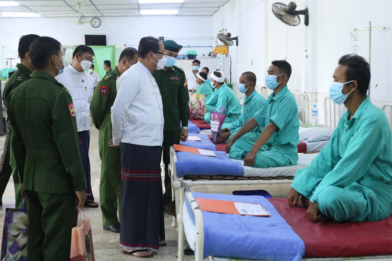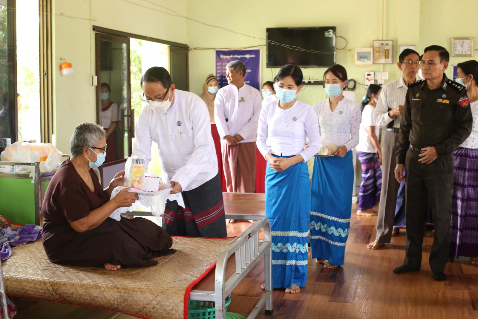 ထို့နောက် ပြည်နယ်ဝန်ကြီးချုပ်သည် အမှတ်(၂)တပ်မတော်ဆေးရုံကုတင်(၁၀၀)တွင် တာဝန်ထမ်းဆောင်လျက်ရှိသော တပ်မတော်သားပါရဂူများ၊ ဆရာဝန်များ၊ ဆေးမှူး၊ သူနာပြုနှင့် အကူဝန်ထမ်းများအတွက် ထောက်ပံ့ငွေကျပ် ၅ သိန်းကို တပ်မှူးဗိုလ်မှူးနန်းဦးထံ ထောက်ပံ့ ပေးအပ်ခဲ့သည်။