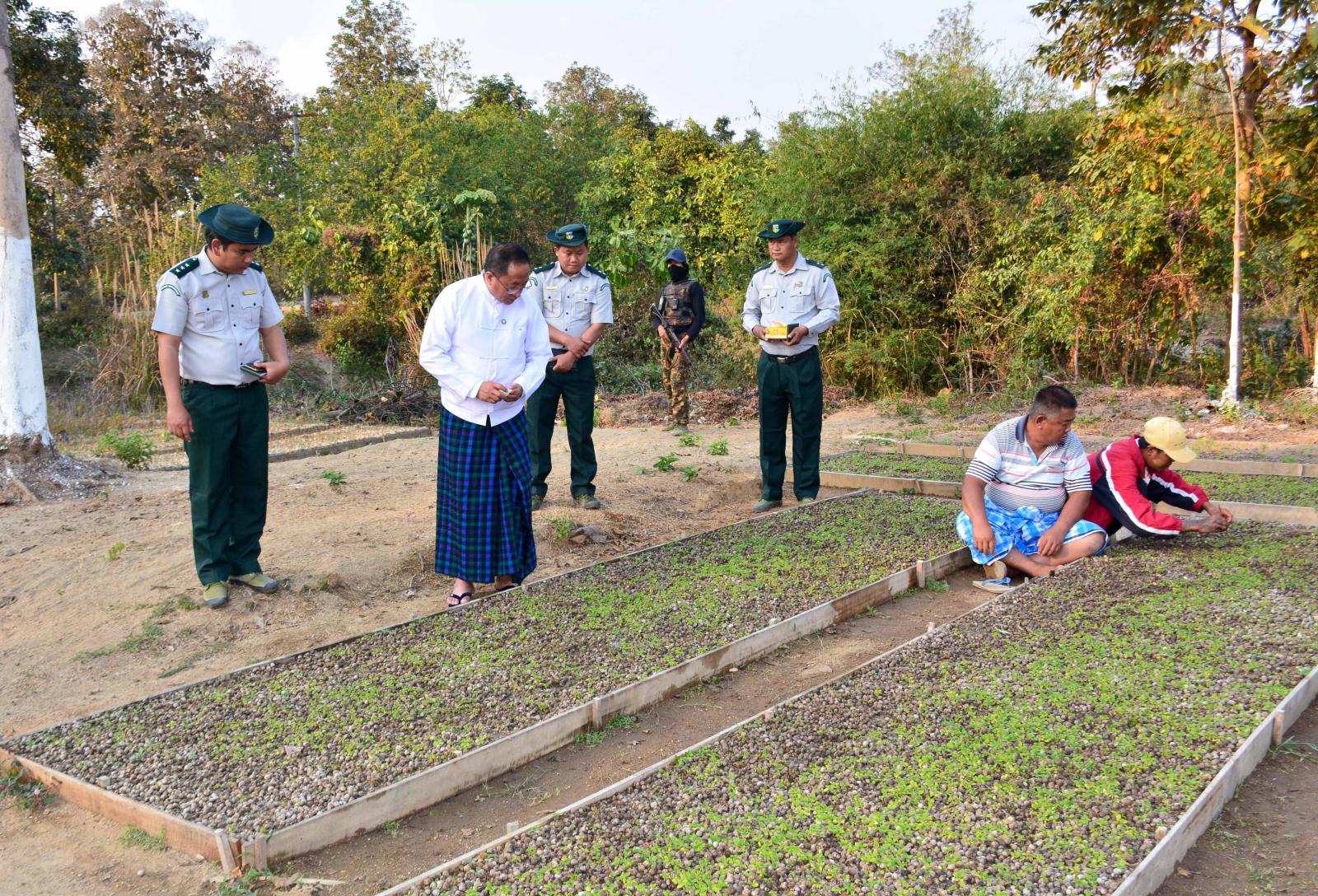 ထိုသို့ သွားရောက်တွေ့ဆုံရာတွင် ပြည်နယ်ဝန်ကြီးသည် မြို့မသစ်တောပျိုးဥယျာဉ်တွင် ၂၀၂၃ ခုနှစ်အတွက် မိုးရာသီ သစ်ပင်စိုက်ပျိုးတောနှင့် လူထုဖြန့်ဖြူးနိုင်ရေးအတွက် ကျွန်း၊ ပျဉ်းကတိုး၊ ယမနေ၊ မန်ဂျာရှား၊ ယင်းမာ၊ မယ်ဇလီ၊ ကံ့ကော်၊ ပျဉ်းမနှင့် ခရေစသည့် ပျိုးပင်ပေါင်း (၁၇၀၀၀) ပင်ကို ပျိုးပင်များ ပျိုးထောင်စိုက်ပျိုးထားရှိမှု အခြေအနေများ ကို လိုက်လံကြည့်ရှုစစ်ဆေးခဲ့သည်။