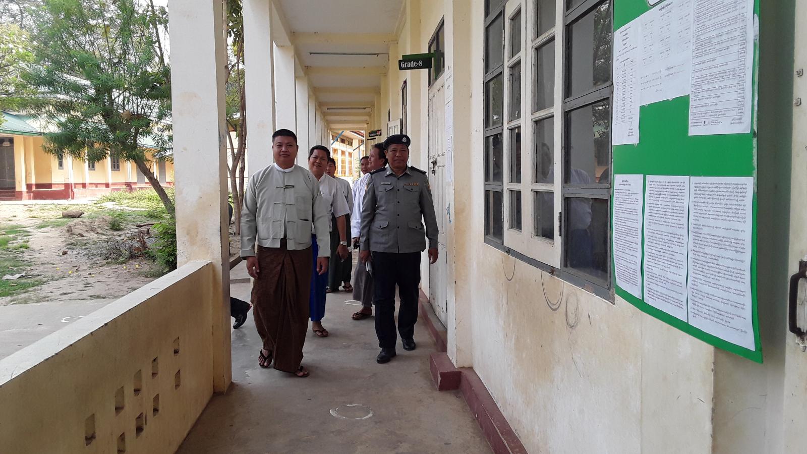 ၂၀၂၃ခုနှစ်၊ တက္ကသိုလ်ဝင်စာမေးပွဲဖြေဆိုမည့်ကျောင်းသား၊ ကျောင်းသူများအေးချမ်းစွာဖြေဆိုနိုင်ရေးနှင့်ဘေးကင်းလုံခြုံရေးအတွက် မြို့နယ်စီမံအုပ်ချုပ်ရေးအဖွဲ့ဥက္ကဋ္ဌ၊ မြို့နယ်အုပ်ချုပ်ရေးမှူး ဦးသက်မြင့်ဦးနှင့်အဖွဲ့ဝင်များ၊ မြို့နယ်ပညာရေးမှူး ဦးမြင့်ထွေး၊ ကြီးကြပ်ရေးမှူးဦးပီတာနှင့်တာဝန်ရှိသူများက စာဖြေဆောင်များ သန့်ရှင်းစေရေးနှင့် စနစ်တကျထားရှိစေရေး၊ လေဝင်လေထွက်ကောင်းစွာရရှိစေရေး၊ စာမေးပွဲဖြေဆိုနေချိန်ကျန်းမာရေးတစ်စုံတစ်ရာဖြစ်ပါက ချက်ချင်းကုသနိုင်ရေးအတွက် ကျန်မာရေးဆေးပေးခန်းထားရှိမှုတို့ကို ကြည့်ရှုစစ်ဆေးခဲ့ကြသည်။