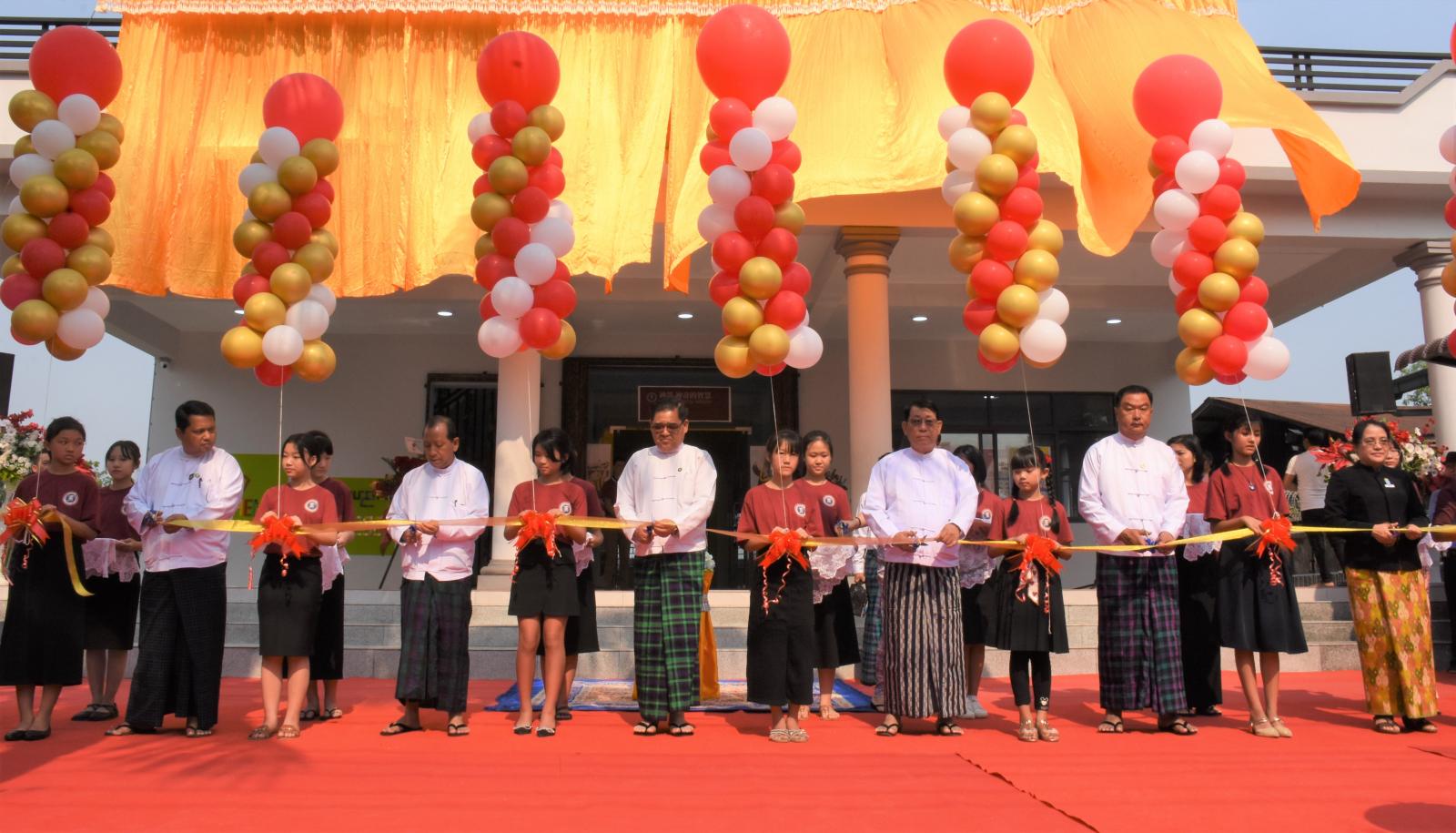ကျောင်းဆောင်သစ်ကို ပြည်နယ်ဝန်ကြီးချုပ်၊ ပြည်နယ်တရားလွှတ်တော်တရားသူကြီးချုပ်၊ ပြည်နယ် စီးပွားရေးရာဝန်ကြီး၊ ပြည်နယ်လူမှုရေးရာဝန်ကြီး၊ ပြည်နယ်တိုင်းရင်းသားရေးရာဝန်ကြီး၊ ပြည်နယ်ဥပဒေချုပ်နှင့် စိန်မော့ပညာရေး မြစ်ကြီးနားကျောင်းခွဲ မတည်တည်ဆောက်ပေးသူ ဦးခင်မောင်ရင်တို့က ဖဲကြိုးဖြတ်ဖွင့်လှစ်ပေးကြပြီး ပြည်နယ်ဝန်ကြီးချုပ်က စိန်မော့ပညာရေး ကျောင်းဆိုင်းဘုတ် အား စက်ခလုတ်နှိပ်ဖွင့်လှစ်ပေးသည်။