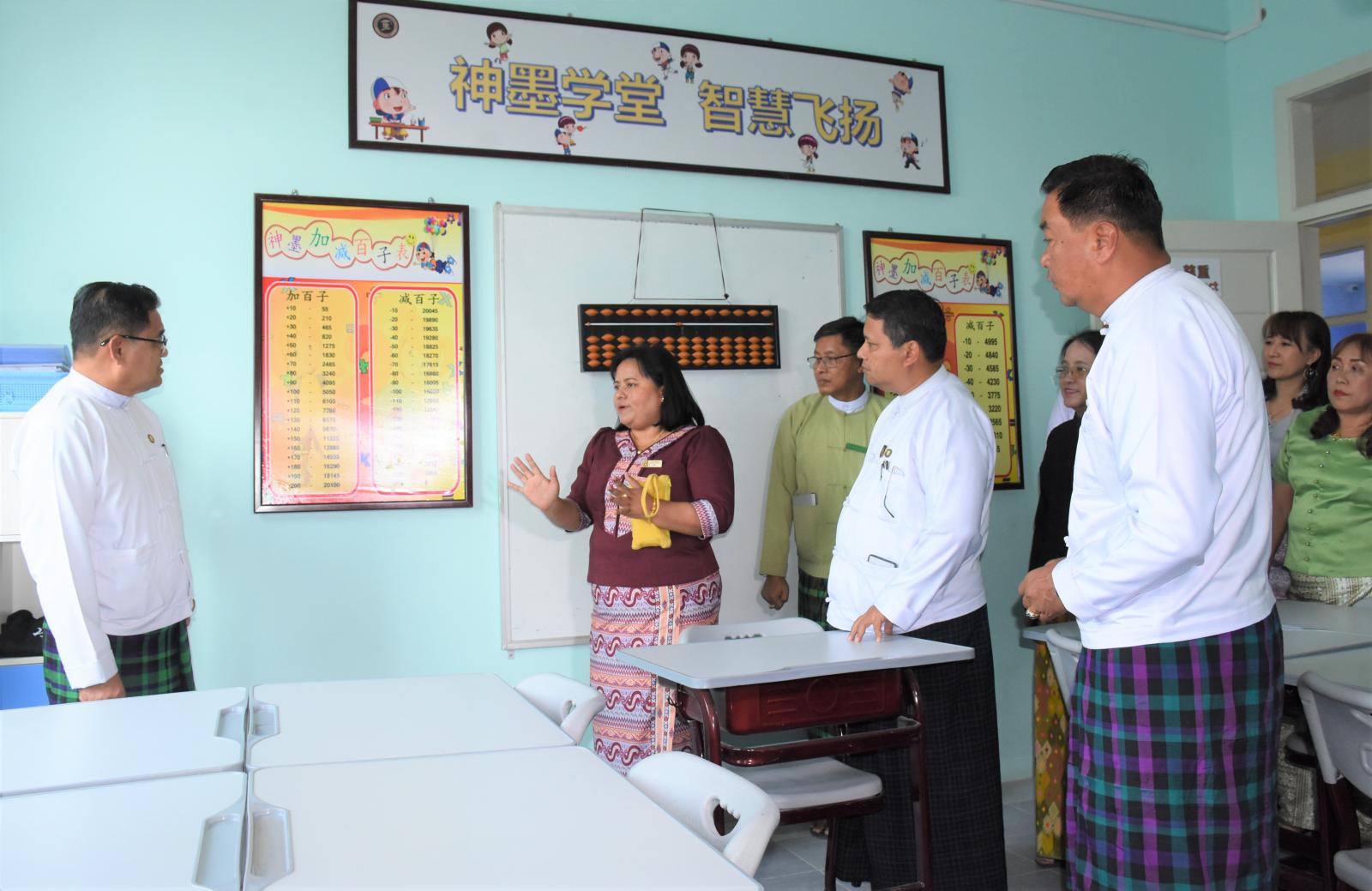ဆက်လက်၍ ကျောင်းအုပ်ဆရာမ ဒေါ်တင်တင်ဦးက ကျောင်းဖွင့်လှစ်ရခြင်းနှင့် ကျေးဇူးတင် စကားပြောကြားပြီး ကျောင်းအဆောက်အဦသစ်အတွင်း အသက်(၄)နှစ်မှ အသက် (၁၄)နှစ်အတွင်း ကလေးငယ်များအား ဦးနှောက်ဉာဏ်ရည်ဖွံ့ဖြိုးမှုလေ့ကျင့်ရေးအတွက် လေ့ကျင့်မှု(၆)ရပ်ဖြင့် ပေသီး စိတ်တွက် သင်္ချာသင်တန်းဖွင့်လှစ်သင်ကြားပေးနေမှု အခြေအနေများနှင့် သင်ထောက်ကူပစ္စည်းများနှင့် စာသင်ခန်းများကို လှည့်လည်ကြည့်ရှုစစ်ဆေးခဲ့ကြပြီး ပြည်နယ်ဝန်ကြီးချုပ်က ဖွင့်ပွဲအခမ်းအနားတွင်ပါဝင်ကြသည့် အကအဖွဲ့အတွက် ဂုဏ်ပြုချီးမြှင့်ငွေများကို ပေးအပ်ချီးမြှင့်ခဲ့ကြောင်း သိရသည်။