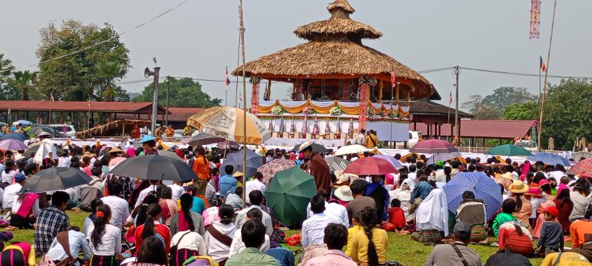 သင်္ကြန်ကာလဓမ္မဒူတခရီးစဥ်အဖြစ် ကြွရောက်တော်မူလာသော မိုင်းဖုန်းဆရာတော်ဘုရားကြီးသည် ကချင်ပြည်နယ်၊ ပူတာအိုမြို့မူလာရှီးဒီး ကြိုးတံတားအနီး ယာယီသီတင်းသုံးမည့် မလိခလော့ဟိုတယ်သို့ ဧပြီလ ၁၃ ရက်နေ့ ညနေ ၆:၃၀ နာရီတွင် ရောက်ရှိကြွရောက်တော်မူခဲ့ပြီး ည ၈:၃၀ နာရီတွင် မချမ်းဘော့မြို့ရှိ ရှေးဟောင်းသမိုင်းဝင်ကောင်းမှုလုံစေတီတော်မြတ်ကြီးသို့ ကြွရောက်ဖူးမျှော်ကြည်ညိုပြီးနောက် ည ၉:၃၀ နာရီတွင် ကောင်းမှုလုံစေတီတော်မြတ်ကြီး ရင်ပြင်ရှိ တရားဟောကျောင်းဆောင်တွင် တရားဒေသနာတော်များကို ည ၁၁:၃၀ နာရီထိ ဟောကြားတော်မူခဲ့ကြောင်းသိရသည်။