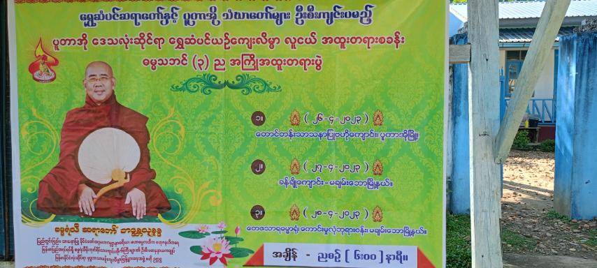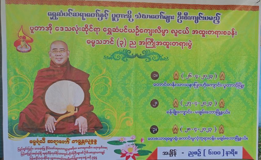 ကချင်ပြည်နယ်၊ ပူတာအိုခရိုင် မချမ်းဘောမြို့နယ်တွင် ရွှေဆံပင်ဆရာတော်နှင့် ပူတာအို သံဃာတော်များ ဦးစီးကျင်းပမည့် ပူတာအိုဒေသလုံးဆိုင်ရာ ရွှေဆံပင်ယဥ်ကျေးလိမ္မာ လူငယ်အထူး တရားစခန်းဓမ္မသဘင် အကြိုအထူးတရားပွဲကို ကောင်းမှုလုံစေတီတော်မြတ်ကြီးဘုရားဝန်းနှင့် ခန်ချိုဘုန်းတော်ကြီး ကျောင်းတို့တွင် ဧပြီလ ၂၇ ရက်နေ့မှ ဧပြီလ၂၈ နေ့ထိ ကျင်းပသွားမည်ဖြစ်သည်။