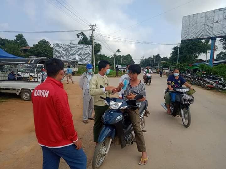 Mask တပ်ဆင်ခြင်းမရှိဘဲ သွားလာနေသည့် လမ်းသွား ၊ လမ်းလာ ပြည်သူများအား ကိုဗစ်−၁၉ ရောဂါ ကူးစက်ပြန့်ပွားမှု မဖြစ်ပေါ်စေရေးအတွက် အိမ်အပြင်ထွက်ပါက ကျန်းမာရေးညွှန်ကြားချက်များနှင့် အညီ မဖြစ်မနေ Mask တပ်ဆင်သွားလာကြရန် အသိပညာပေးပြောကြားပြီး Mask နှစ်ခုကို ငွေကျပ် (၁၀၀ဝိ/-)ဖြင့် ချက်ချင်းဝယ်ယူ တပ်ဆင်စေခဲ့ကြောင်း သိရှိရသည်။