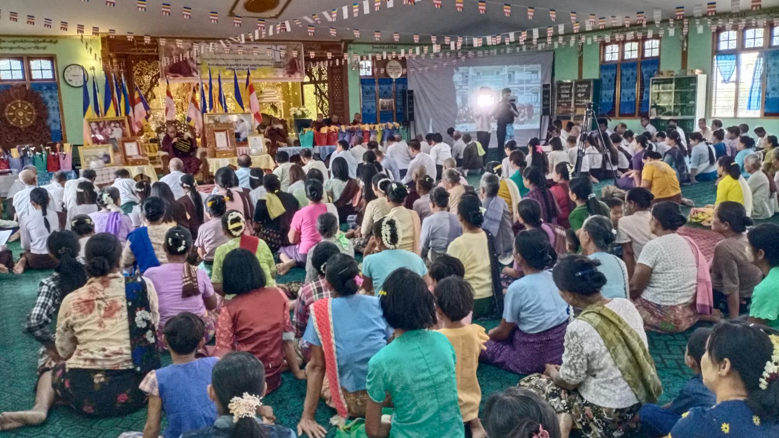 ရှေးဦးစွာ ခရိုင်စီမံအုပ်ချုပ်ရေးအဖွဲ့ဥက္ကဋ္ဌ ဦးစိုးရွှေအောင်နှင့် တက်ရောက်လာကြသူများက မြို့နယ်သံဃာ့နာယကအဖွဲ့ဥက္ကဋ္ဌ နတ်ပေးကျောင်းတိုက် ဦးစီးပဓာနနာယက ဆရာတော် ဘဒ္ဒန္တဣဣန္ဒောဘာသထံမှ ငါးပါးသီလခံယူဆောက်တည်ကြပြီး သံဃာတော်များ ရွတ်ပွားသရဇ္စျာယ်တော်မူသည့် မေတ္တာသုတ်ပရိတ် တရားတော်များကို နာယူကာ ခရိုင်စီမံအုပ်ချုပ်ရေးအဖွဲ့ဥက္ကဋ္ဌက သာသနာရေးဆိုင်ရာများ လျှောက်ထားသည်။
