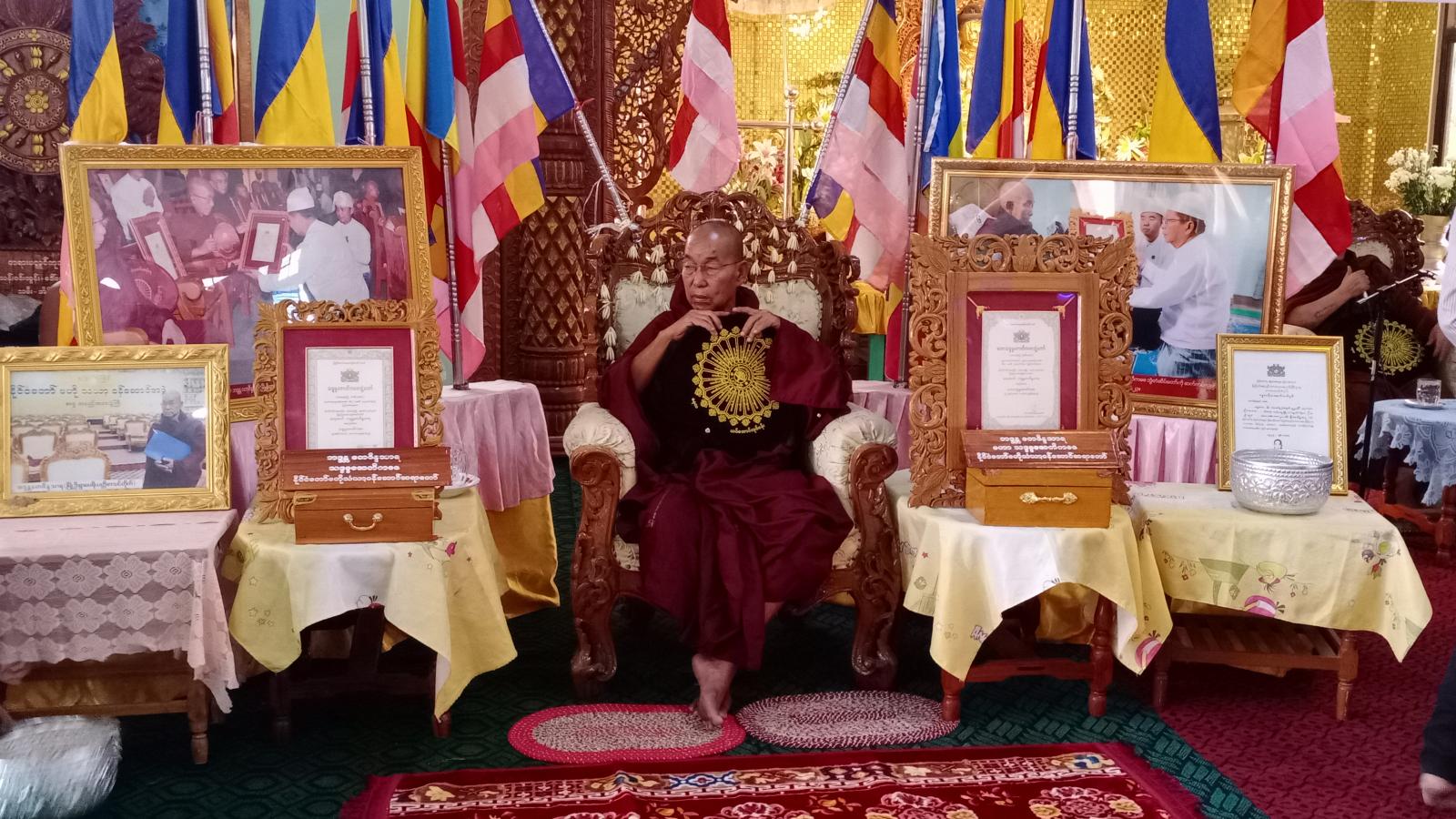ထို့နောက် ခရိုင်စီမံအုပ်ချုပ်ရေးအဖွဲ့ဥက္ကဋ္ဌက မဟာသဒ္ဓမ္မဇောတိကဓဇ ဘွဲ့တံဆိပ်တော်ရ မြို့ဦးပရိယတ္တိစာသင်တိုက် ဆရာတော် ဘဒ္ဒန္တတေဇိန္ဒသာရအား ဘွဲ့တံဆိပ်တော်နှင့် ဝတ္ထုငွေများ ဆက်ကပ်လှူဒါန်းကြပြီး မြို့နယ်သံဃနာယကအဖွဲ့ဥက္ကဋ္ဌ ဆရာတော်ထံမှ အနုမောဒနာတရား နာယူကြကာ သံဃာတော်များအား လှူဖွယ်ပစ္စည်းများ ဆက်ကပ်လှူဒါန်းကြကြောင်း သိရသည်။