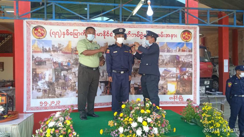 ရှေ့ဦးစွာ တနိုင်းခရိုင်မီးဘေးလုံခြုံရေးကော်မတီဥက္ကဋ္ဌ၊ တနိုင်းခရိုင်စီမံအုပ်ချုပ်ရေးအဖွဲဥက္ကဋ္ဌ ဦးမိုးဇော်လင်က (၇၇) နှစ်မြောက် မြန်မာနိုင်ငံမီးသတ်တပ်ဖွဲ့နေ့ မိန့်ခွန်းပြောကြားပြီး ခရိုင်စီမံ အုပ်ချုပ်ရေးအဖွဲ့ အတွင်းရေးမှူး ခရိုင်ရဲတပ်ဖွဲမှူး ဒုရဲမှူးကြီး ဌေးဦး၊ ခရိုင်စီမံအုပ်ချုပ်ရေး အဖွဲ့ဝင် ဦးဇော်ဇော်ထက်၊ ခရိုင်ပညာရေးမှူး ဦးအောင်ဆွေ၊ မြို့နယ်စီမံအုပ်ချုပ်ရေးအဖွဲ့ဥက္ကဋ္ဌ ဦးအောင်စိုး၊ မြို့နယ်စီမံအုပ်ချုပ်ရေးအဖွဲ့ အတွင်းရေးမှူး ရဲမှူး မြသောင်းနှင့် မြို့နယ်မီးသတ်ဦးစီးအရာရှိ ဦးအောင်ဇော်ဝင်းတို့က အရန်မီးသတ် တပ်ဖွဲ့ဝင်များအား ရာထူးတံဆိပ်များ တပ်ဆင်ပေးခြင်း၊ တိုးချဲ့ဖွဲ့စည်းထားသော မိုင်းခွန်းကျေးရွာ အရန်မီးသတ်တပ်ဖွဲ့ဝင် (၃၅) ဦးအား ဝတ်စုံများ ပေးအပ်ပြီး တပ်ဖွဲ့ဝင်များအား ဂျပန်ဂိုးကျဉ်းဘောလုံးပြိုင်ပွဲတွင် ဆုရရှိသူများအား ဆုများ ပေးအပ်ခဲ့ကြသည်။