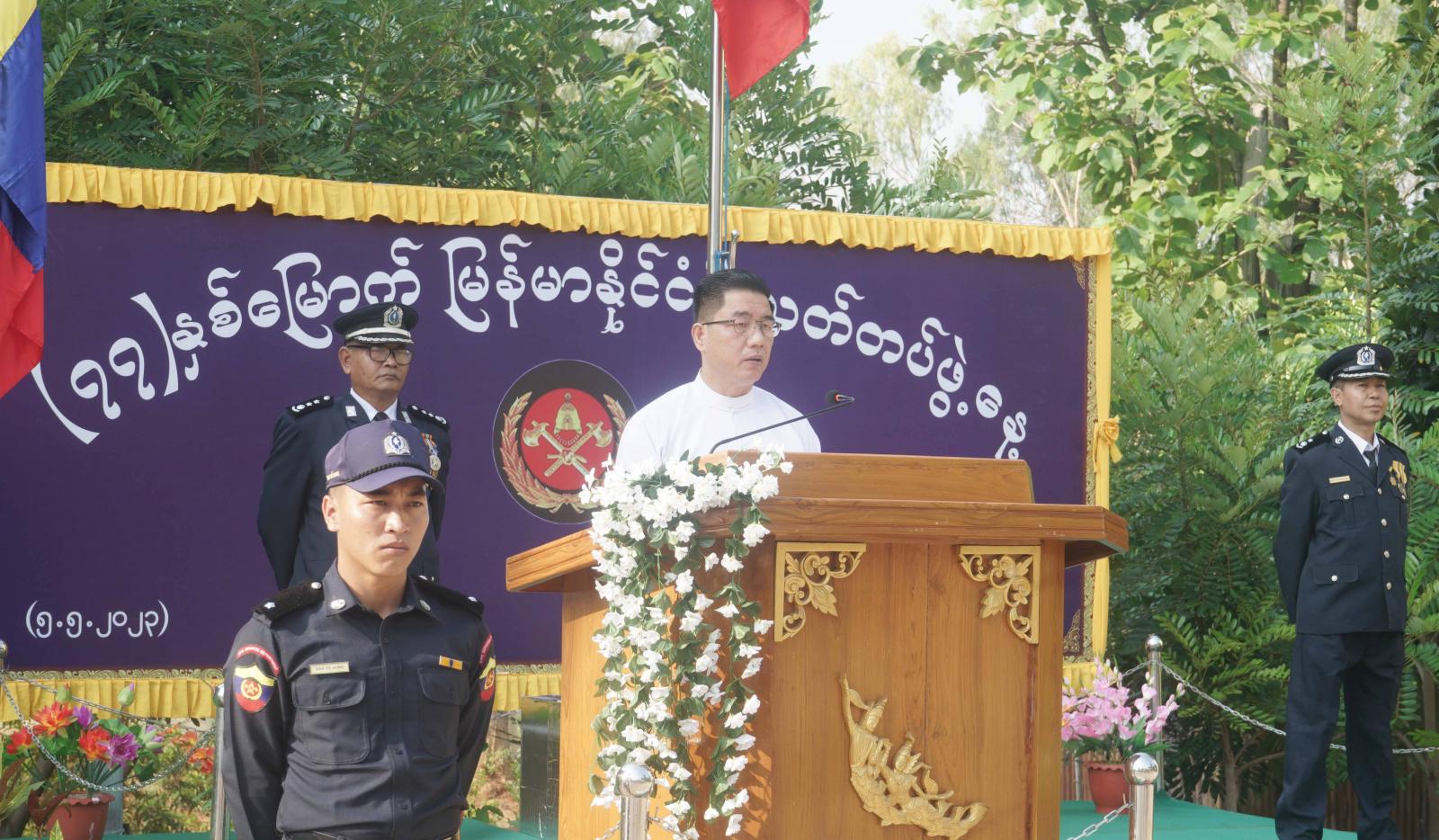 ထို့နောက် ပြည်နယ်ဝန်ကြီးချုပ်က မီးသတ်တပ်ဖွဲ့ဝင်များသည် နိုင်ငံတော်၏အကျိုး၊ တိုင်းရင်းသားပြည်သူများ၏ အကျိုးကို ဆောင်ရွက်နေသည့် ပြည်သူ့အကျိုးပြု တပ်ဖွဲ့တစ်ခု ဖြစ်ကြောင်း၊ မီးသတ်တပ်ဖွဲ့ဝင်များအား နိုင်ငံတော်၏ ခိုင်မာသော အရန်အင်အားဖြစ်စေရေးအတွက် လေ့ကျင့်ဖွဲ့စည်း၍ တပ်ဖွဲ့ဝင်တစ်ဦးချင်း၏ စွမ်းဆောင်ရည်မြင့်တင်ခြင်း၊ ရှာဖွေကယ်ဆယ်ရေးနည်းပညာ၊ သတင်းအချက်အလက် ဆက်သွယ်ရေးနည်းပညာများကို စဉ်ဆက်မပြတ် လေ့လာပြီး အမြဲမပြတ် တပ်ဖွဲ့အလိုက်စုဖွဲ့ လေ့ကျင့်ပြီး ကြိုတင်ပြင်ဆင်မှုများ ဆောင်ရွက်နေရမည်ဖြစ်ကြောင်း၊ မီးသတ်တပ်ဖွဲ့ဝင်များ၏ စွမ်းဆောင်မှုတိုင်းသည် ပြည်သူများ၏ နေထိုင်မှု ဘဝလုံခြုံရေးမှ အစပြု၍ နိုင်ငံတော်တည်ဆောက်ရေးအထိ အကျုံးဝင်ကြောင်း၊ မီးသတ်လုပ်ငန်းသည် တစ်ဦးတစ်ယောက်ထဲမရပဲ မီးသတ်တပ်ဖွဲ့ ဝင်များ၊ တာဝန်ရှိသူများနှင့် ပြည်သူများ၏ စုပေါင်းစွမ်းအားဖြင့် ဆောင်ရွက်မှသာပိုမို အောင်မြင်နိုင် ကြောင်း ဂုဏ်ပြုမိန့်ခွန်းပြောကြားခဲ့သည်။