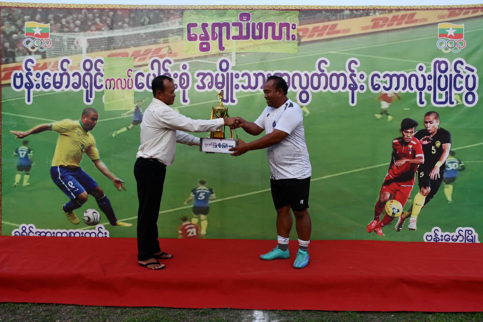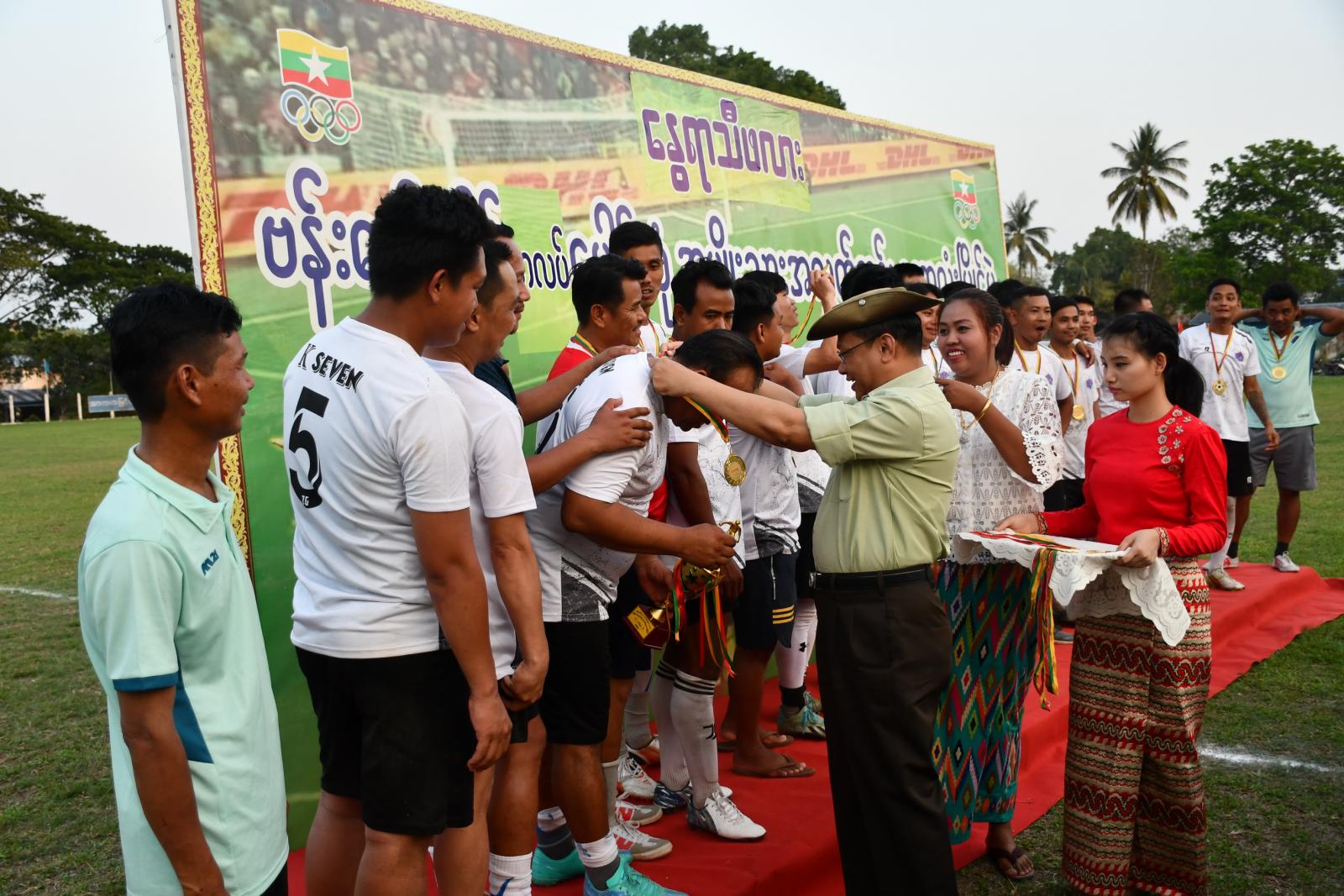 ဆက်လက်၍ ဆုချီးမြှင့်ခြင်းကို ကျင်းပရာ ပထမ၊ ဒုတိယရရှိသည့် အသင်းများအား ဆုဖလား၊ ဆုငွေနှင့် လည်ဆွဲပြားများကို တာဝန်ရှိသူများက အသီးသီးပေးအပ်ချီးမြှင့်ခဲ့ရာ ပထမဆု ရရှိသည့် K-SEVEN အသင်းအား ဆုဖလားနှင့် ဆုငွေ၊ လည်ဆွဲများကို ခရိုင်စီမံအုပ်ချုပ်ရေးအဖွဲ့ဥက္ကဋ္ဌ ဦးခင်မောင်လွင်က ပေးအပ်ချီးမြှင့်ခဲ့ကြောင်း သိရပါသည်။