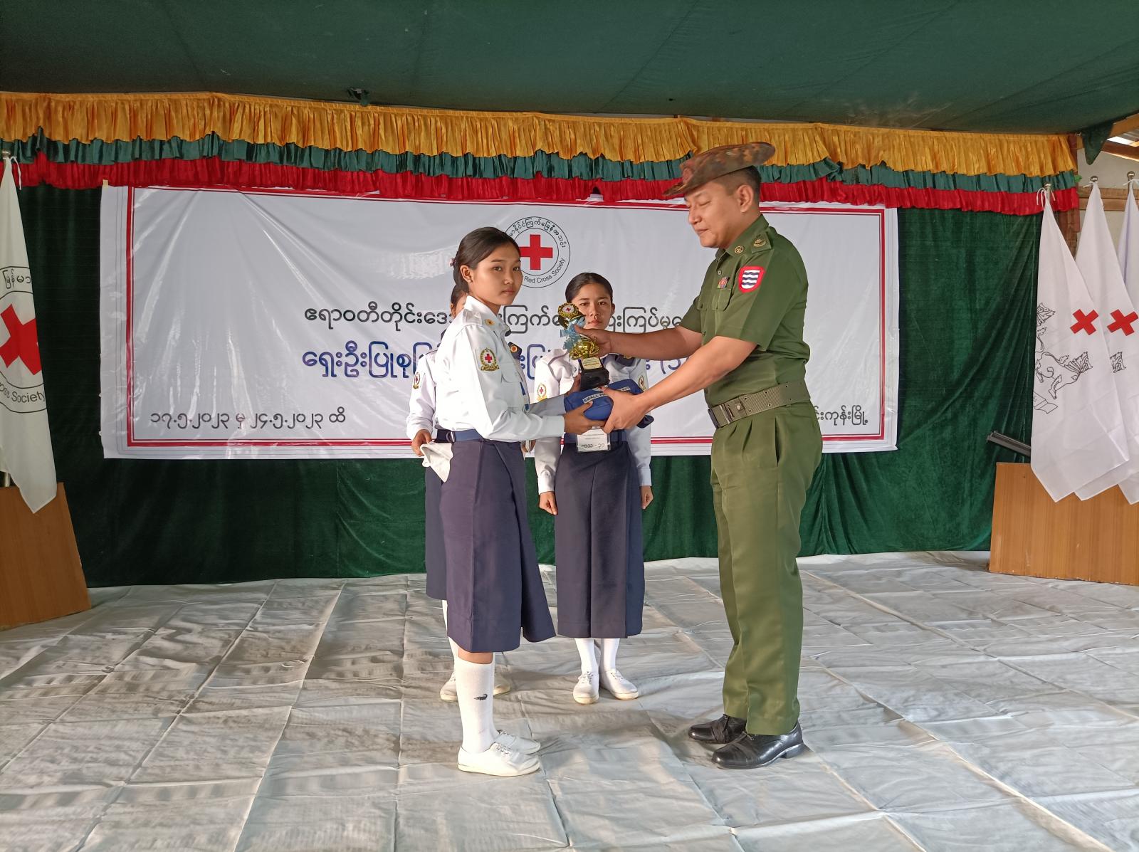 ဆက်လက်၍ IRRAWADDY GREEN TOWERS မှတာဝန်ရှိသူတစ်ဦးက ကြက်ခြေနီနဲ့ ပူးပေါင်းပြီး အလုပ်လုပ်တာများနေပြီဖြစ်ကြောင်း၊ တာဝါတိုင်များ တည်ဆောက်မှုဟာ အများကြီး ရှိပြီဖြစ်ကြောင်း ပြောကြားခဲ့ပြီး၊ သင်တန်းဆင်းလက်မှတ် ချီးမြှင့်ခြင်း၊ သင်တန်းတွင် ထူးချွန်သူများအား ထူးချွန်ဆုများကို တာဝန်ရှိသူများက ဆုများအသီးသီး ချီးမြှင့်ခဲ့ကြသည်။