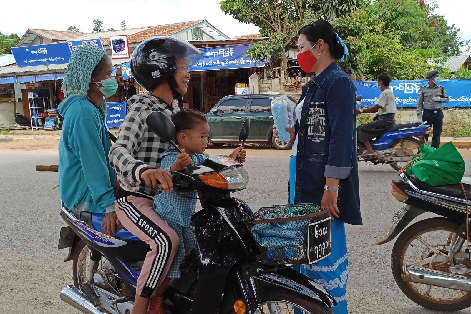 ကယားပြည်နယ် လွိုင်ကော်ခရိုင် ဒီးမော့ဆိုမြို့နယ်တွင် အသက်ရှူလမ်းကြောင်းဆိုင်ရာ ကိုဗစ်-၁၉ ရောဂါ ကူးစက်မှုမဖြစ်ပေါ်စေရေးအတွက် ကာကွယ်ထိန်းချုပ်ရေးလုပ်ငန်းများကို အရှိန်အဟုန်မပျက် ဆောင်ရွက်လျက်ရှိရာ ယနေ့ နံနက် ၉ နာရီအချိန်က ငွေတောင်ကျေးရွာရှိ စိုက်ပျိုးရေး သိပ္ပံ(ဒီးမော့ဆို) ကျောင်းရှေ့၌ နေအိမ်ပြင်ပသို့ ထွက်ခွာသွားလာနေသော ပြည်သူများအား နှာခေါင်းစည်း မဖြစ်မနေ တပ်ဆင်အသုံးပြုရေး အသိပညာပေး ဆောင်ရွက်ခဲ့ ကြောင်း သိရသည်။