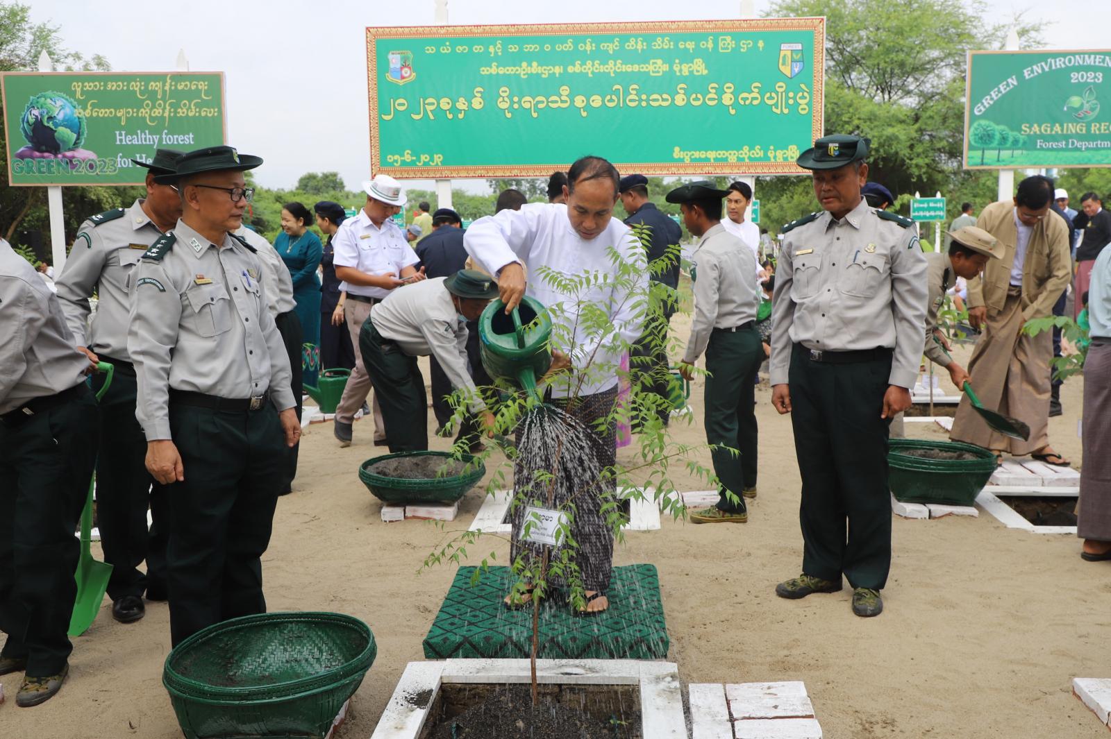 ရာသီဥတုပြောင်းလဲမှုနှင့် သဘာဝဘေးအန္တရာယ် လျော့ပါးလာပြီး မိုးခေါင်ရေရှားမှုနှင့် အပူဒဏ် ကာကွယ်ရေး၊ သစ်တောသယံဇာတများ ရေရှည်တည်တံ့စေရေး သစ်တောဖုံးလွှမ်းမှု တိုးတက်လာစေရေး၊ ပတ်ဝန်းကျင်စိမ်းလန်းစိုပြည်ရေးနှင့် ပြည်သူများမှသစ်တော သစ်ပင်များ၏ တန်းဖိုးအား သိရှိနားလည်မြတ်နိုးသည့် စိတ်ဓါတ်များ ဖြစ်ပေါ်လာ၍ သစ်ပင် စိုက်ပျိုးခြင်းဖြင့် သစ်တောပြုစုထိန်းသိမ်းခြင်း လုပ်ငန်းများအား ပိုမိုပူးပေါင်းဆောင်ရွက်လာ စေရန်အတွက် ယနေ့နံနက်ပိုင်းတွင် စစ်ကိုင်းတိုင်းဒေသကြီး၊ မုံရွာမြို့၊ မုံရွာစီးပွားရေးတက္ကသိုလ် ကျောင်းဝန်းအတွင်း၌ ၂၀၂၃-ခုနှစ်၊ မိုးရာသီစုပေါင်း သစ်ပင်စိုက်ပျိုးပွဲတော် အခမ်းအနားကို ကျင်းပရာ အခမ်းအနားသို့ တိုင်းဒေသကြီး ဝန်ကြီးချုပ် ဦးမြတ်ကျော်၊ တိုင်းဒေသကြီး တရားသူကြီးချုပ်၊ တိုင်းဒေသကြီး အစိုးရအဖွဲ့ဝင်များ၊ တိုင်းဒေသကြီး/ခရိုင်/မြို့နယ်အဆင့် ဌာနဆိုင်ရာများနှင့် ဝန်ထမ်းများ၊ မုံရွာစီးပွားရေးတက္ကသိုလ်မှ ဆရာ/ဆရာမများ၊ ကျောင်းသား/ ကျောင်းသူများ၊ သစ်တောဦးစီးဌာနမှဝန်ထမ်းများနှင့် လူမူရေးအသင်းအဖွဲ့ဝင်များ တက်ရောက် ကြသည်။