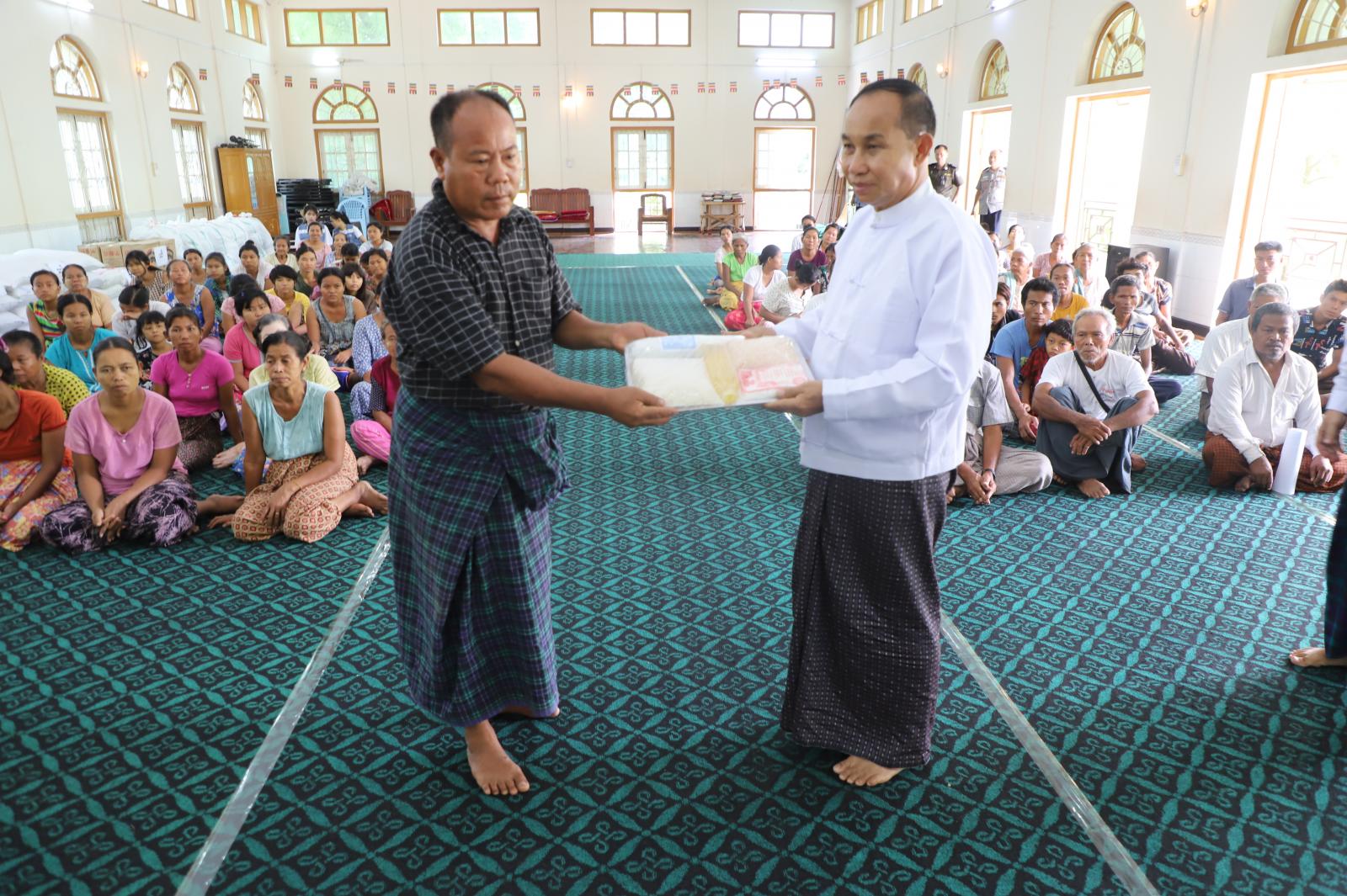 ယင်းနောက် တိုင်းဒေသကြီး ဝန်ကြီးချုပ်နှင့် တာဝန်ရှိသူများက ယာယီနေရပ်စွန့်ခွာ ပြည်သူ များထံ ဆန်ရိက္ခာဖိုးငွေ၊ ၂ ပတ်စာ ဆန်၊ ဆီ၊ ဆား၊ ပဲနှင့် ဘေးအန္တရာယ်ဆိုင်ရာ စီမံခန့်ခွဲမှု ဦးစီးဌာနမှ မိသားစုသုံးပစ္စည်းများအား အသီးသီး ထောက်ပံ့ပေးအပ်ခဲ့ကြပြီး ယာယီနေရပ် စွန့်ခွာ ပြည်သူများကိုယ်စား ပြည်သူတစ်ဦးက ကျေးဇူးတင်စကား ပြန်လည်ပြောကြားခဲ့သည်။ ဆက်လက်ပြီး တိုင်းဒေသကြီး ဝန်ကြီးချုပ်နှင့်တာဝန်ရှိသူများက ယာယီနေရပ်စွန့်ခွာ ပြည်သူများအား ရင်းရင်းနှီးနှီး လိုက်လံနှုတ်ဆက်အားပေးပြီး အခမ်းအနားကို ရုပ်သိမ်းခဲ့ကြ သည်။