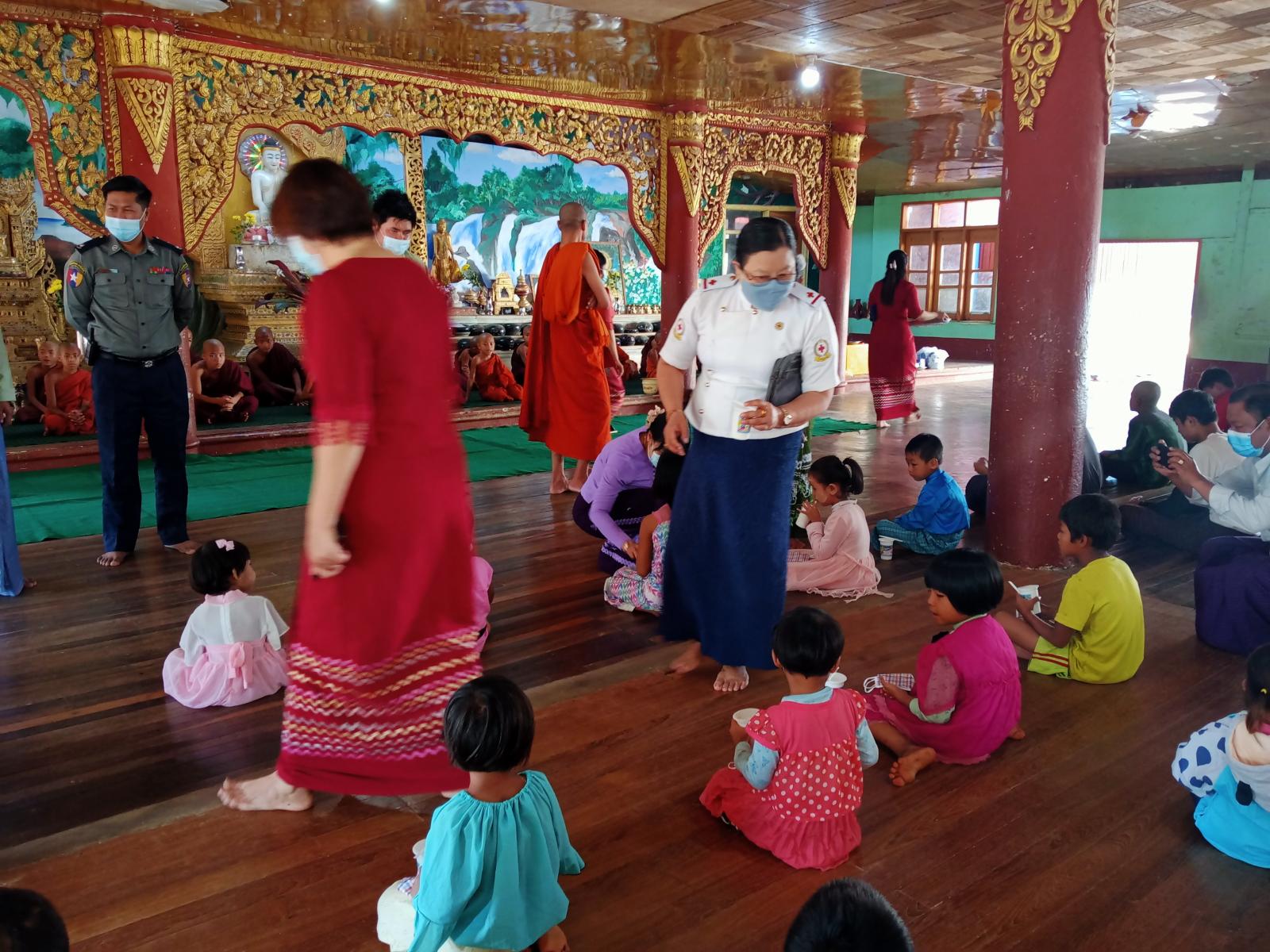 ဆက်လက်၍ တက်ရောက်လာကြသော ဌာနဆိုင်ရာများနှင့် အသင်းအဖွဲ့များမှ ၁၀နှစ်အောက်ကလေးငယ်များအား အာဟာရနို့ဗူးများ ဝေငှပေးခဲ့ကြပြီး ဂေဟာရှိ ဆရာ/ဆရာမများနှင့် ကလေးများအား mask များ ဖြန့်ဝေပေးခဲ့ကြသည်။