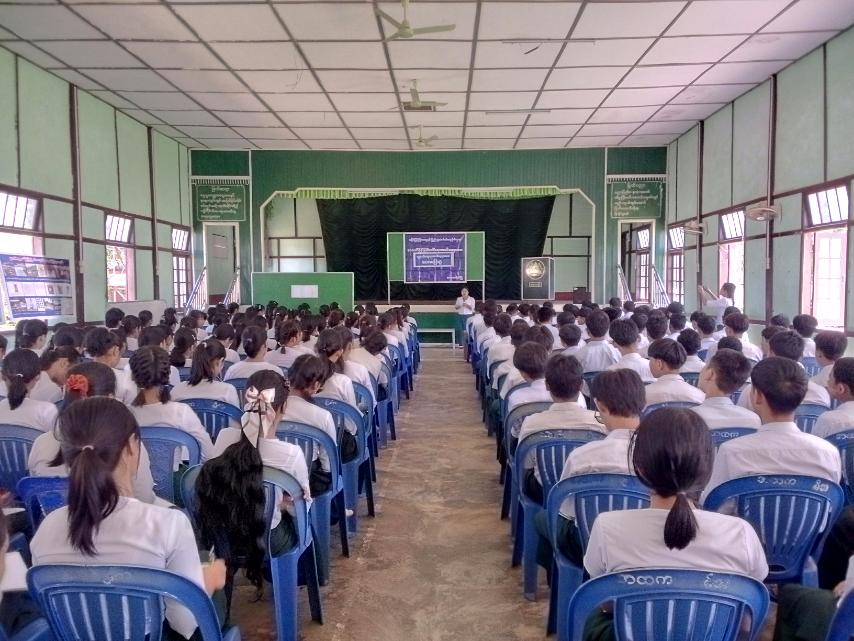 ထိုနောက် ခရိုင်ကုန်းလမ်းပို့ဆောင်ရေး ညွှန်ကြားမှုဦးစီးဌာန၊ လက်ထောက်ညွှန်ကြားရေးမှူး ဦးညွန့်ဦးက ကျောင်းသားကျောင်းသူလူငယ်များ ယာဥ်များမောင်းနှင်ရာတွင် အသက်(၁၈) နှစ်ပြည့်နှင့် ယာဥ်မောင်းလိုင် စင်ပြုလုပ်၍ မောင်းနှင်ကြရေး၊ ယာဥ်စည်းကမ်း၊ လမ်းစည်းကမ်းနှင့် ပတ်သက်သည့်အမှတ်အသားများ မော်တော်ဆိုင်ကယ်/မော်တော်ယာဥ် မောင်းနှင်ရာတွင် သိရှိလိုက်နာရမည့်အချက်များ၊ ယာဥ်စည်းကမ်း၊ လမ်းစည်းကမ်းနှင့် ပတ်သက်သည့် နည်းဥပဒေပုဒ်မများ၊ ဆိုင်ကယ်စီးလျှင်ဆိုင်ကယ်ဦးထုပ်ဆောင်း၍ မောင်းနှင် စီးနှင်းရေး စသည်တို့ကို အသိပညာပေး ဟောပြောခဲ့ကြသည်။