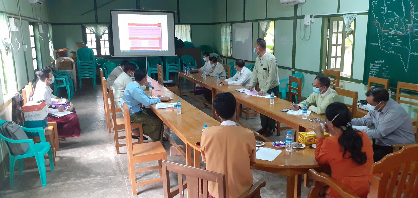 ရှေးဦးစွာ ပြည်သူ့လွှတ်တော်ကိုယ်စားလှယ်ဒေါ်နန်းထွေးသူမှ ကျေးစွာများရွေးချယ်ရာတွင် အဓိက ထားဦးစားပေးရမည့်ကျေးရွာများကိုစိစစ်ရွေးချယ်ကြရန် လိုအပ်ကြောင်းပြောကြားခဲ့ပြီး၊ ပြည်နယ်လွှတ် တော်ကိုယ်စား လှယ် ဦးရန်နိုင်ဆွေကထပ်ဆင့်အမှာစကားပြောကြားခဲ့သည်။ ယင်းနောက် မြို့နယ်ကျေး လက်ဒေသဖွံ့ဖြိုး တိုးတက်ရေးဦးစီးဌာန၊ မြို့နယ်ဦးစီးမှူးဦးသန်းဝင်းစိုးမှ ကျေးရွာဖွံ့ဖြိုးရေး (VDP)နှင့်မြစိမ်း ရောင်ကျေးရွာစီမံကိန်း အကြောင်းမိတ်ဆက်ရှင်းလင်းခြင်း၊၂၀၁၈-၂၀၁၉ဘဏ္ဍာရေးနှစ်(VDP)စီမံကိန်းဖြင့် ဆောင်ရွက် သည့် ကျေးရွာဖွံ့ဖြိုးရေးလုပ်ငန်းများနှင့်အဆိုပြုကျေးရွာများအား တင်ပြခဲ့သည်။