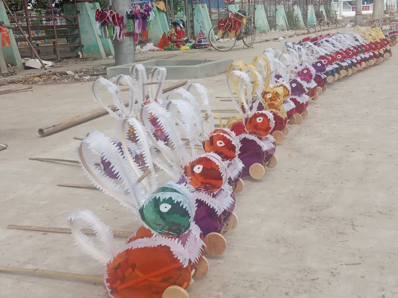 အမှတ် ၁၀ ရပ်ကွက်ရွှေသည်ရပ်မှ ပြုလုပ်ရောင်းချသူတစ်ဦးက မီးပုံး၊ မီးဆိုင်း၊ ကလေး ကစားစရာ အရုပ်များအဖြစ် ယုန်ရုပ်၊ သင်္ဘောပုံစံမျိုးစုံ၊တိုက်လေယာဉ်ပုံများ၊ ဟယ်လီကော်ပတာပုံများ အစရှိ သဖြင့် ပုံစံမျိုးစုံပြုလုပ်ရပါ ကြောင်း ဝါခေါင်လမှစ၍ ပုံစံများချိုးကာ ကြိုတင်ပြုလုပ်ရကြောင်း ရှင်းပြသည်။