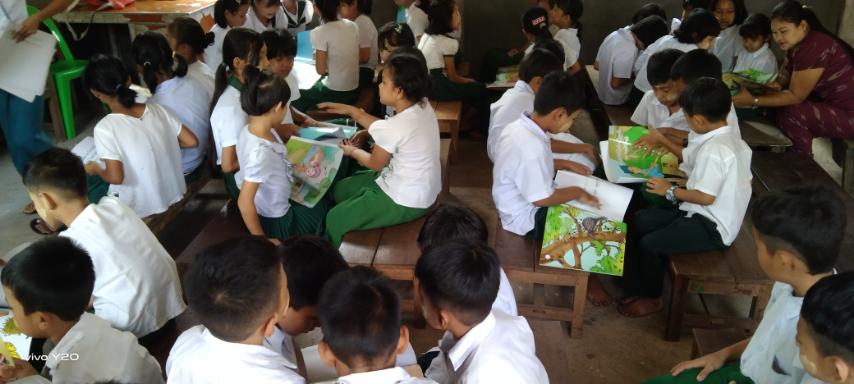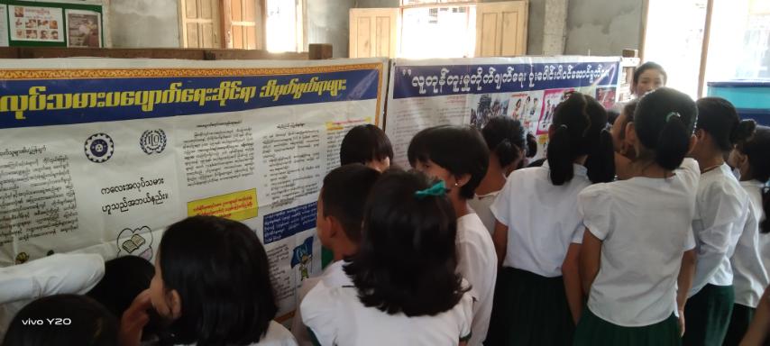 ထိုနောက် ကျောင်းသား၊ ကျောင်းသူများအား စာဖတ်သည့် အလေ့အထကောင်းရရှိစေရေး၊ စာပေဖတ်ရှုလေ့လာနိုင်ရန် ခရိုင်ပြန်ကြားရေးနှင့်ပြည်သူ့ဆက်ဆံရေးဦးစီးဌာနမှ ရုပ်ပြပုံပြင်စာအုပ်များ၊ ကလေးများအသိပညာတိုးပွားရေး စာအုပ်စာပေများနှင့် ကလေးအလုပ်သမားပပျောက်ရေး စသည့်အသိပညာပေး နံရံကပ်စာစောင်များကို ခင်းကျင်းပြသရာ ကျောင်းသားကျောင်းသူများမှ စိတ်ပါ၀င်စားစွာ ကြည့်ရှုလေ့လာခဲ့ကြောင်း သိရသည်။