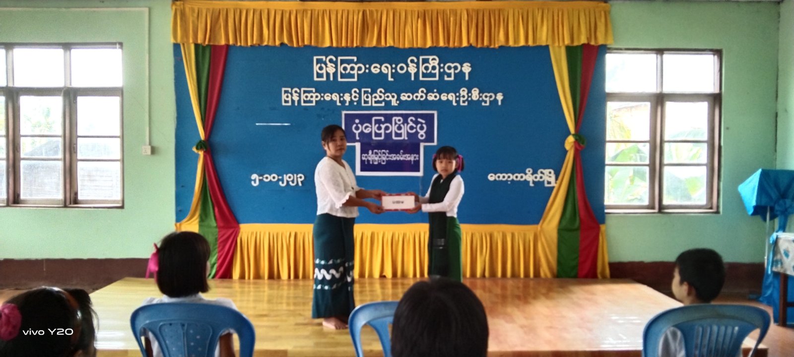 အဆိုပါပြိုင်ပွဲတွင် မြန်မာတစ်နိုင်လုံးအတိုင်းအတာဖြင့် ဝင်ရောက်ယှဉ်ပြိုင်သည့် ကျောင်းသား၊ ကျောင်းသူများအနက် ပထမဆုကို ကော့ကရိတ်ခရိုင်ကိုယ်စားပြု အ.ထ.က (ချောင်းတောင်)မှ Grade 3 ကျောင်းသူ နန်းသဲသဲမိုးဦးက ရရှိခဲ့ပြီး၊ ဒုတိယ၊ တတိယ၊ နှစ်သိမ့်ဆု (၅)ဆုကို အခြားတိုင်းဒေသကြီး/ ပြည်နယ်အသီးသီးမှ ကျောင်းသား၊ ကျောင်းသူများရရှိခဲ့ကြောင်း သိရသည်။