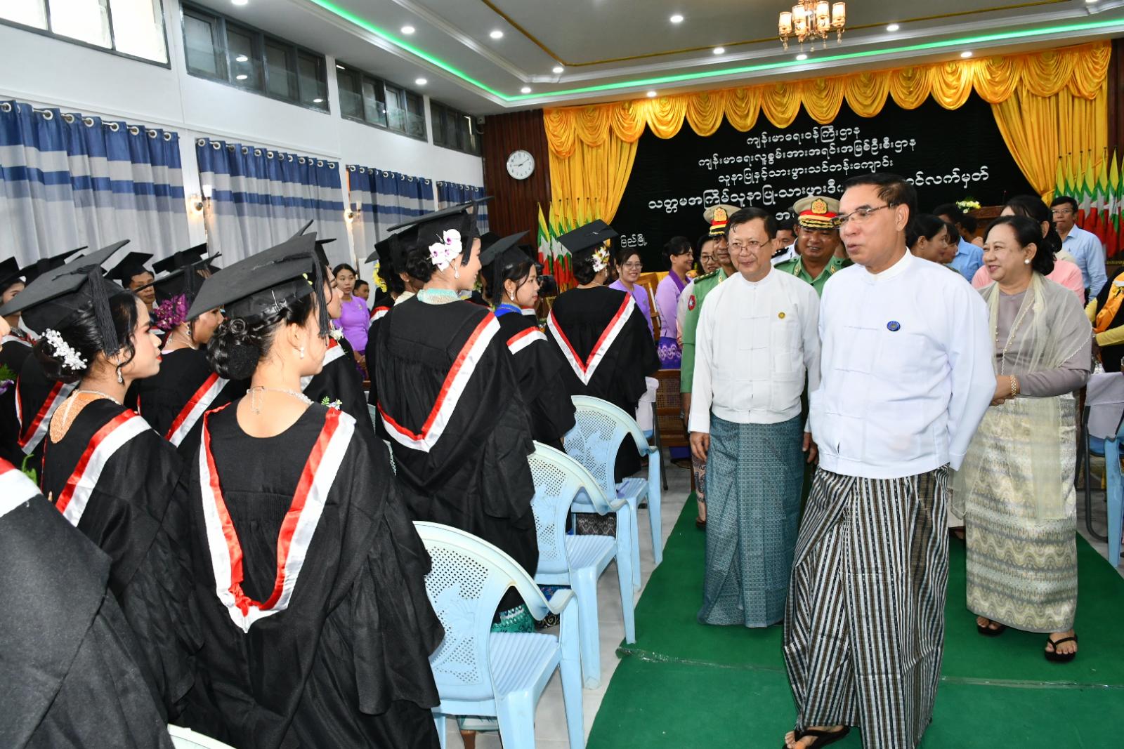 အခမ်းအနားတွင် ဦးစွာတိုင်းဒေသကြီး ဝန်ကြီးချုပ်က အမှာစကားပြောကြားသည်။ ယင်းနောက် တာဝန်ရှိသူများ၊ သူနာပြု-သားဖွားဒီပလိုမာ(၃)နှစ် သင်တန်းသား/ သင်တန်းသူများနှင့်အတူ အမှတ်တရမှတ်တမ်းဓာတ်ပုံများ ရိုက်ကူးကြပြီး သင်တန်းကျောင်းမှ ဆရာ/ဆရာမများနှင့် သင်တန်းသား/သင်တန်းသူများကို ရင်းရင်းနှီးနှီး နုတ်ဆက်အားပေးစကားပြောကြားသည်။