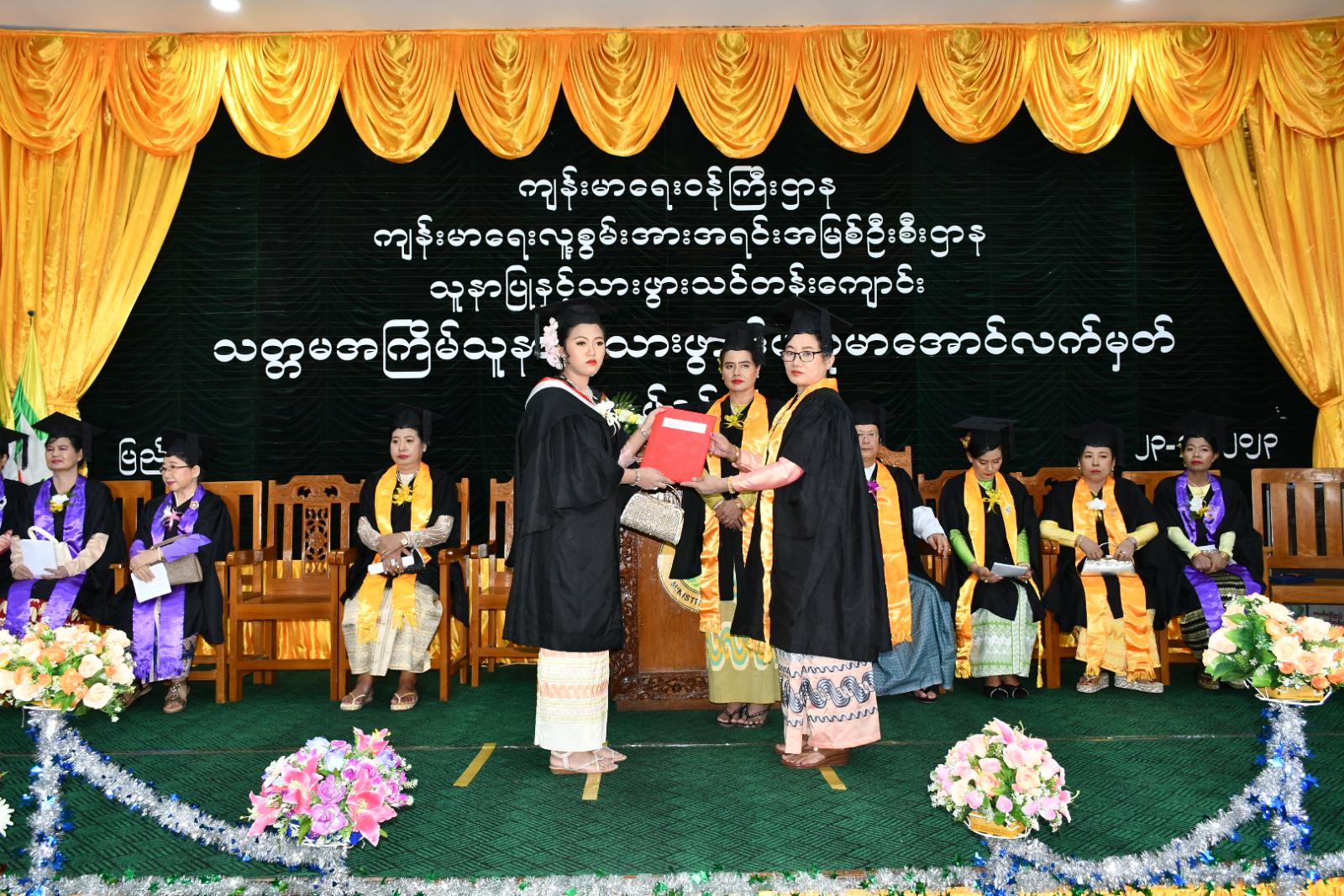 ထို့နောက် ဒီပလိုမာအောင်လက်မှတ်အပ်နှင်းပွဲ ဆက်လက်ကျင်းပရာ သူနာပြုနှင့်သားဖွားသင်တန်းကျောင်း (ပြည်)မှ ကျောင်းအုပ်ကြီး ဒေါ်စန်းစန်းဌေးက အဆိုပါသင်တန်းကျောင်း၏ အပတ်စဉ်(၂၆) သင်တန်းသား/သင်တန်းသူ ၁၂၂ ဦးအား ဒီပလိုမာအောင်လက်မှတ်များ အပ်နှင်းချီးမြှင့်ပြီး ယင်းအောင်လက်မှတ်အပ်နှင်းခြင်းကို အတည်ပြုကာ သင်တန်းဆင်း အမှာစကားပြောကြားခဲ့ကြောင်းနှင့် အခမ်းအနားသို့ သင်တန်းသား၊ သင်တန်းသူများ၏ မိဘ/ အုပ်ထိန်းသူ ဆွေမျိုးမိသားစုများလည်း တက်ရောက်ကြောင်း သိရသည်။