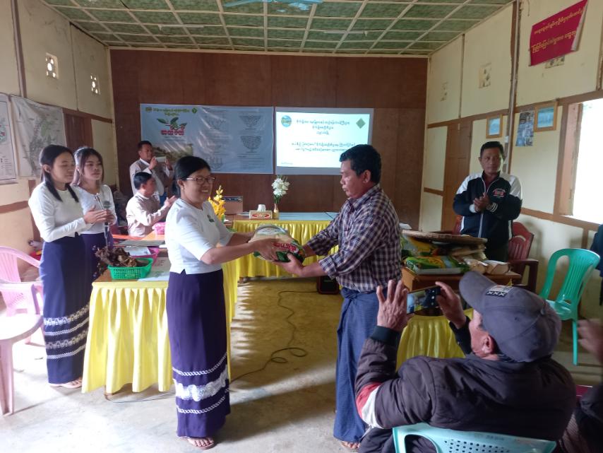 ဆက်လက်၍ တောင်သူများအား တိုင်းဒေသကြီးသီးနှံကာကွယ်ရေးတာဝန်ခံမှ ပညာပေး လက်ကမ်းစာစောင်များနှင့် ပိုးဖမ်းထောင်ချောက် Yello Sticker/ Blue Sticker များ၊ ဟုမ္မလင်းမြို့ နယ်စိုက်ပျိုးရေးဦးစီးဌာနမှ မိုးစပါးအပြီးသီးထပ်စိုက်ပျိုးရန် ရေဆင်းစပ်မျိုး ၁ နေကြာမျိုးစေ့ ၅ ဧကစာ၊ ရေဆင်း- ၁၁ ပဲတီစိမ်း ၅ ဧကစာ နှင့် အိမ်ခြံဥယျာဥ်များတွင်စိုက်ပျိုးရန် ဟင်းသီးဟင်ရွက်မျိုးစေ့ ၂၀၀ ထုတ်ကို တောင်သူများထံပေးအပ်ခဲ့သည်။