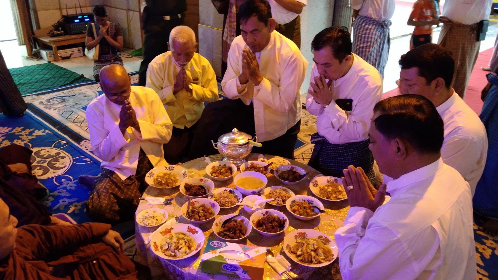 ယင်းနောက်ခရိုင်စီမံအုပ်ချုပ်ရေး အဖွဲ့ဝင်(၁) ဒုတိယဗိုလ်မှူးကြီး နိုင်ဝင်း အဖွဲ့ဝင်(၂) ဦးစိန်သောင်း၊ ခရိုင်နှင့်မြို့နယ်အဆင့် ဌာနဆိုင်ရာ တာဝန်ရှိသူများနှင့် ဧည့်ပရိသတ်အပေါင်းတို့က ဆရာတော်၊ သံဃာတော် အရှင်သူမြတ်တို့အား လှူဖွယ်ဝတ္ထုပစ္စည်းများနှင့် အာရုဏ်ဆွမ်း ဆက်ကပ် လှူဒါန်းပေးပြီး လှူဒါန်းမှုအစုစုတို့အတွက် ရေစက်သွန်းချ အမျှပေးဝေခဲ့ကြကြောင်း သိရသည်။
