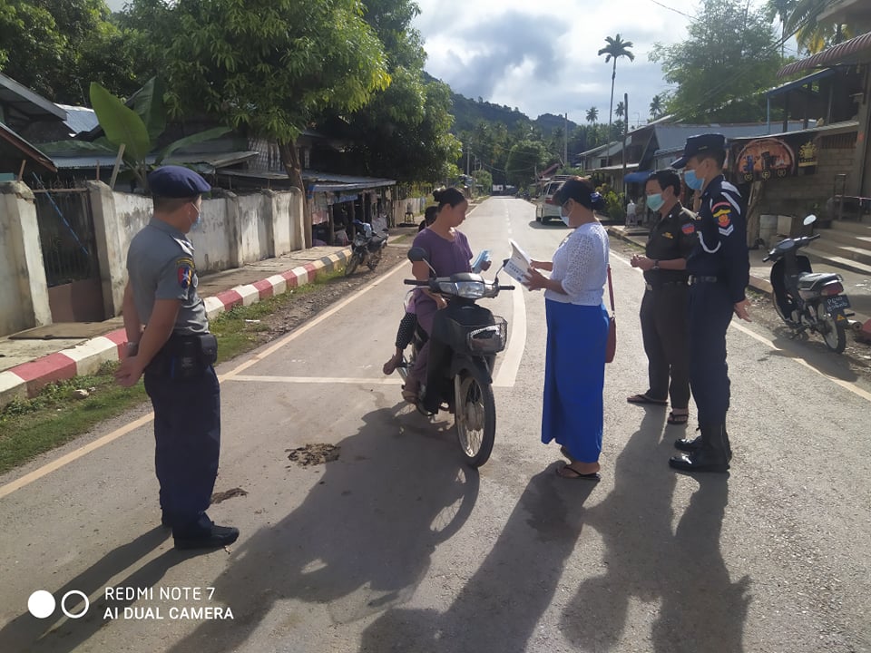 ထိုသို့ ဆောင်ရွက်ရာတွင် မြို့နယ် ကိုဗစ်-၁၉ ထိန်းချုပ်ရေးနှင့်အရေးပေါ်တုံ့ပြန်ရေးကော်မတီဝင်များ ဖြစ်ကြ သော လူမှုဝန်ထမ်းဦးစီးဌာနမှ ဝန်ထမ်းများ၊ မြို့နယ်အထွေထွေအုပ်ချုပ်ရေးဦးစီးဌာနမှ ဝန်ထမ်းများ၊ မြို့နယ်လူဝင်မှုကြီးကြပ် ရေးနှင့်ပြည်သူ့အင်အားဆိုင်ရာ ဦးစီးမှူးရုံးမှ ဝန်ထမ်းများ၊ မြို့နယ်ကုသရေးနှင့် ပြည်သူ့ကျန်းမာရေးဦးစီးဌာနမှ ဝန်ထမ်းများ၊ မြို့နယ်မီးသတ်တပ်ဖွဲ့ဝင်များနှင့် မြန်မာနိုင်ငံရဲတပ်ဖွဲ့တို့ ပူးပေါင်း၍ ကိုဗစ်-၁၉ ရောဂါ ကြိုတင် ကာကွယ်ရေးအတွက် စျေးပိုင်းရပ်ကွက် ဗိုလ်ချုပ်လမ်းနှင့် ဘုရင့်နောင်လမ်းဆုံ (မင်္ဂလာဓမ္မာရုံရှေ့)တွင် သွားလာနေသော ပြည်သူများအား မိမိတို့ နေအိမ်ပြင်ပကို ထွက်ခွာသွားလာပါက မဖြစ်မနေ Mask တပ်ဆင်သွားလာရန်နှင့် ကျန်းမာရေးနှင့်အားကစားဝန်ကြီးဌာနမှ ထုတ်ပြန်ထားသော စည်းကမ်းချက်များနှင့်အညီ လိုက်နာဆောင်ရွက်သွားရန် အသိပညာပေးပြောကြားပြီး Mask တပ်ဆင်ခြင်းမရှိသော ပြည်သူများအား Mask များကို ချက်ချင်းဝယ်ယူ တပ်ဆင်စေခဲ့ကြောင်း သိရသည်။