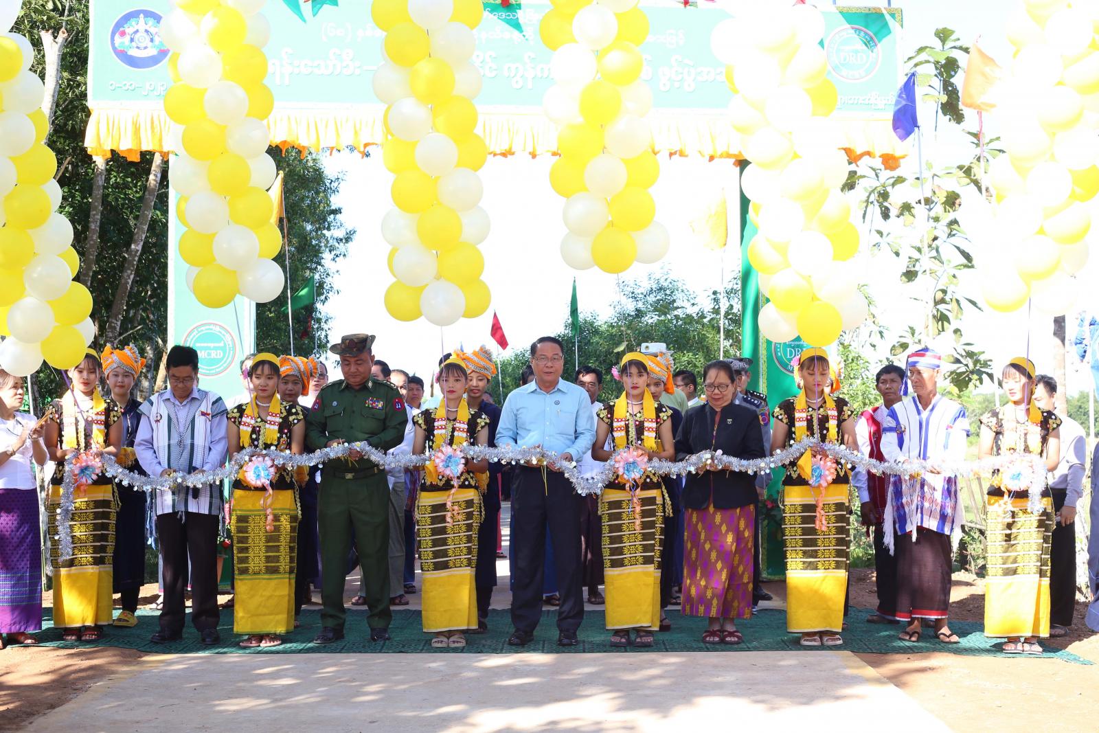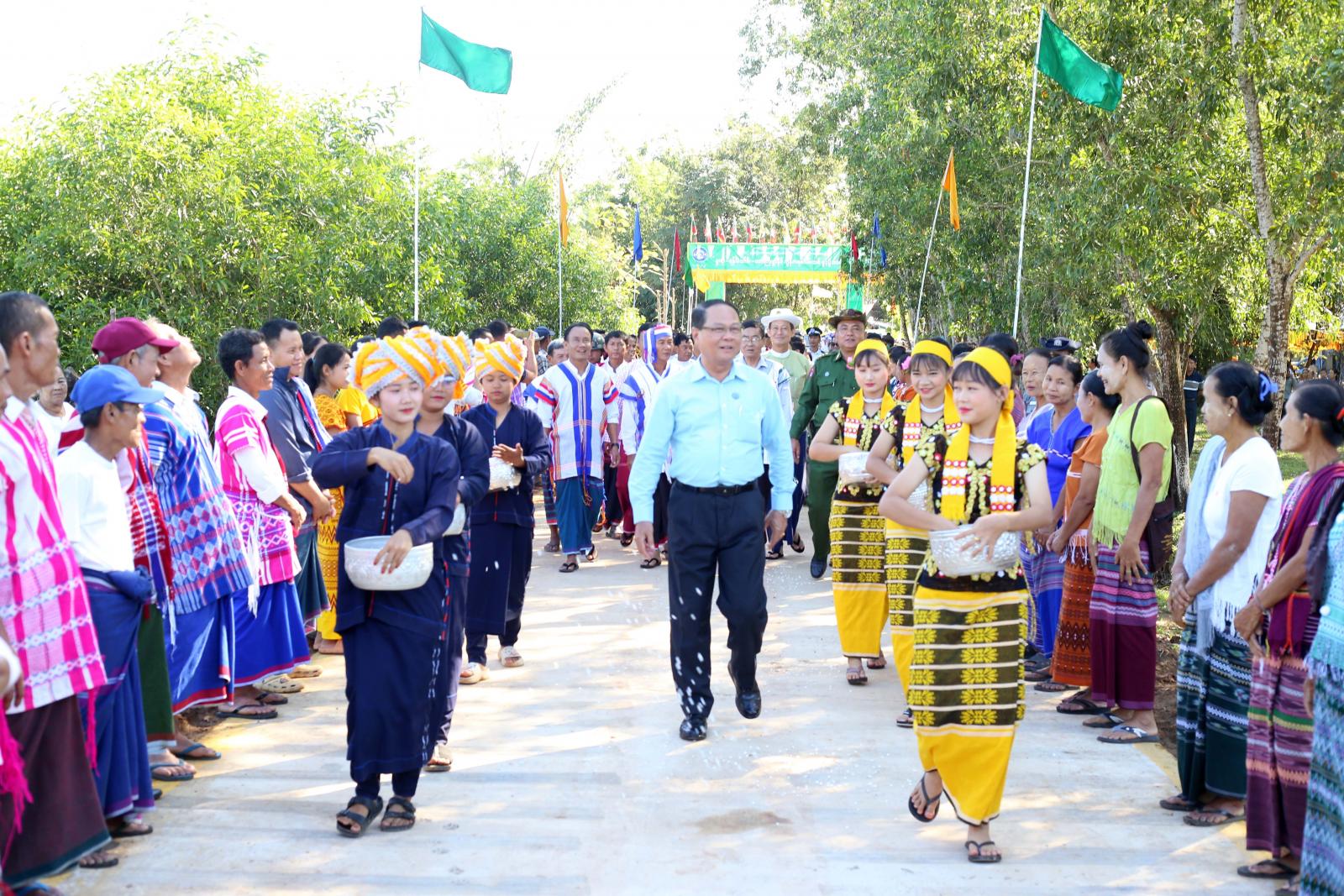ယင်းနောက် ပြည်နယ်ဝန်ကြီးချုပ်က ကျေးရွာအုပ်ချုပ်ရေးမှူးနှင့်လမ်းကော်မတီအား ဂုဏ်ပြုမှတ်တမ်းလွှာနှင့် လမ်းဖွင့်ပွဲအထိမ်းအမှတ်အလံငယ်များ ပေးအပ်ချီးမြှင့်ခဲ့ပြီး ကျေးရွာအုပ်ချုပ်ရေးမှူးက လမ်းဖွင့်ပွဲအထိမ်းအမှတ် လက်ဆောင်များအား လက်ရောက်ပေးအပ်ခဲ့သည်။