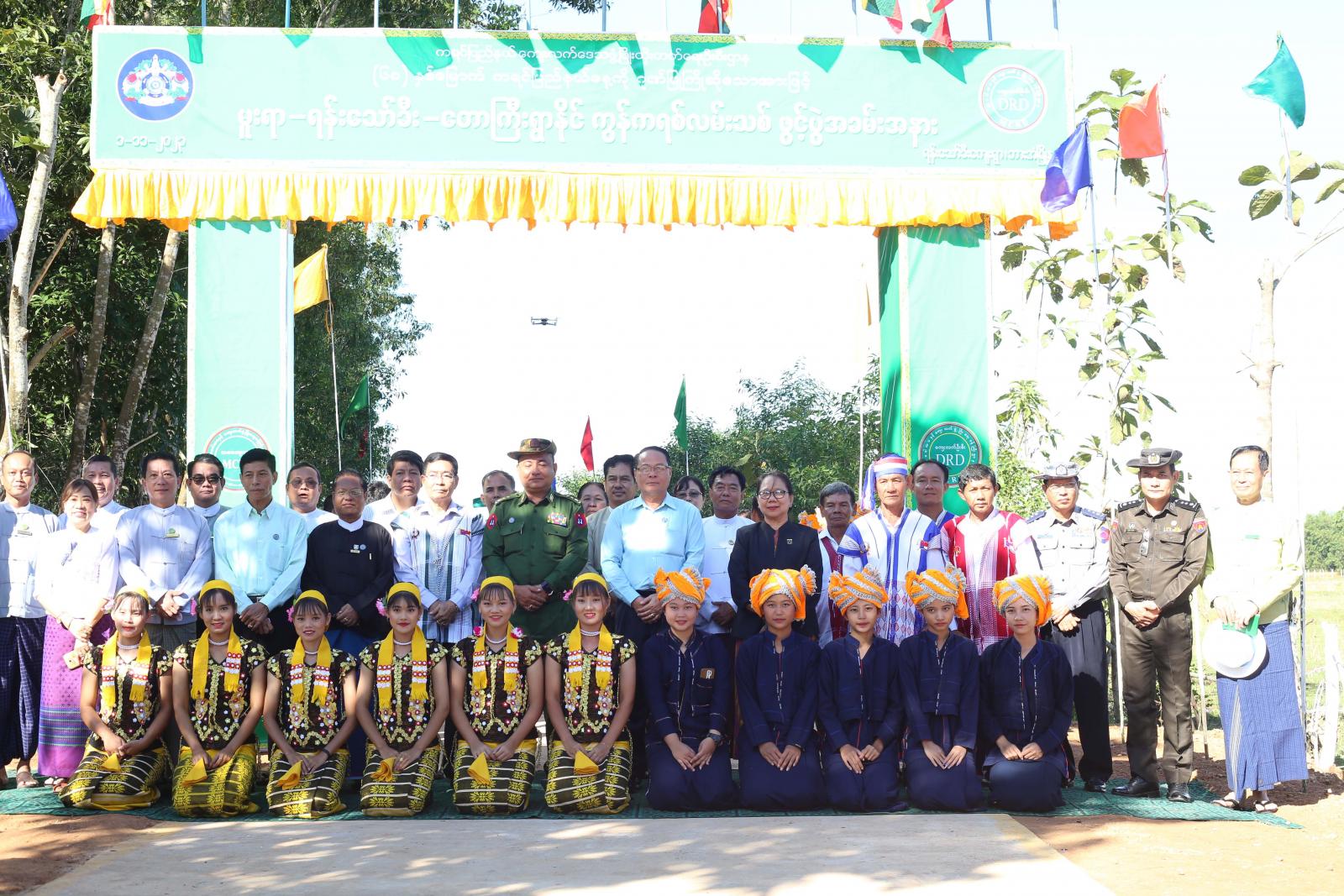 ဆက်လက်၍ ပြည်နယ်ဝန်ကြီးချုပ်၊ ပြည်နယ်တရားလွှတ်တော်တရားသူကြီးချုပ်၊ ပြည်နယ်အစိုးရအဖွဲ့ဝင်များနှင့်ကော့တရုတ်ရကျေးရွာ အုပ်စုအုပ်ချုပ်ရေးမှူးတို့က မူးရာ-ရန်းသော်ခီး-တောကြီးရွာနိုင် ကျေးရွာချင်းဆက် ကွန်ကရစ်လမ်းအား ဖဲကြိုးဖြတ်ဖွင့်လှစ်ပေးကြပြီး အဆိုပါလမ်းကို ၂၀၂၂-၂၀၂၃ ဘဏ္ဍာရေးနှစ်တွင် ကျေးရွာဖွံ့ဖြိုးတိုးတက်ရေးစီမံကိန်း(VDP)ရန်ပုံငွေကျပ်(၁၀)သန်း၊ ပြည်သူလူထုထည့်ဝင်ငွေကျပ်(၅၀)သန်းဖြင့် ၂၇၀၀ ပေ၊ ၂၀၂၃-၂၀၂၄ ဘဏ္ဍာရေးနှစ်တွင် ကျေးလက်ဒေသဖွံ့ဖြိုးရေးနှင့်ဆင်းရဲမှုလျော့ချရေး(ကလဖ)ရန်ပုံငွေမှ (ဘိလပ်မြေအိတ် ၃၀၀) အတွက် ငွေကျပ် ၃ ဒဿမ ၃ သန်း၊ ပြည်သူလူထုထည့်ဝင်ငွေကျပ် ၅၆ ဒဿမ ၇ သန်းဖြင့် ၂၆၀၀ ပေ၊ စုစုပေါင်း လမ်းအရှည် ၅၃၀၀ ပေအတွက် ကုန်ကျငွေပေါင်း ကျပ်သန်း ၁၂၀ ဖြင့် ဆောင်ရွက်ပြီးစီး၍ ယနေ့လမ်းဖွင့်ပွဲကို ကျင်းပရခြင်းဖြစ်ကာ ပြည်နယ်ဝန်ကြီးချုပ်နှင့်တာဝန်ရှိသူများသည် အဆိုပါ လမ်းအားဖြတ်သန်းကြည့်ရှုစစ်ဆေးခဲ့ကြကြောင်း သိရသည်။