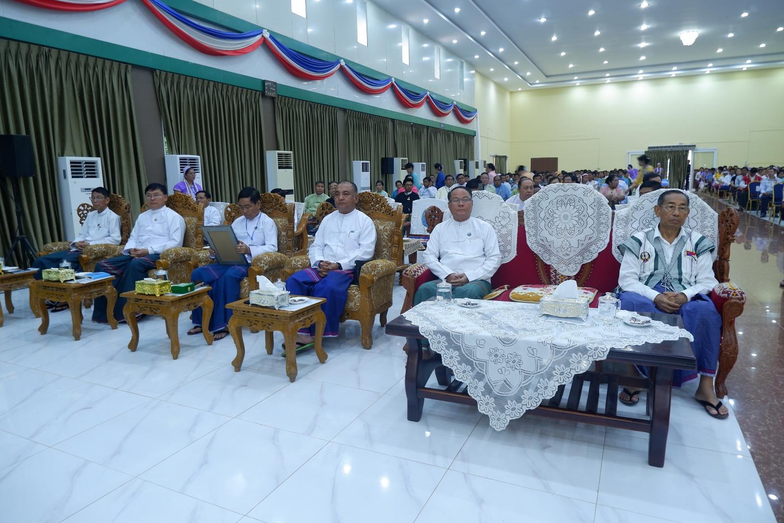 ထို့နောက် ဂုဏ်ပြုဆုချီးမြှင့်ခြင်းအခမ်းအနား ဆက်လက်ကျင်းပရာ နိုင်ငံတော်စီမံအုပ်ချုပ်ရေးကောင်စီအဖွဲ့ဝင်များဖြစ်ကြသော မန်းငြိမ်းမောင်၊ ခွန်စံလွင်၊ တိုင်းရင်းသားလူမျိုးများရေးရာဝန်ကြီးဌာန ပြည်ထောင်စုဝန်ကြီး Jeng Phang နော်တောင်၊ ပြည်နယ်ဝန်ကြီးချုပ်ဦးစောမြင့်ဦးနှင့် ပြည်နယ်တရားလွှတ်တော် တရားသူကြီးချုပ်တို့က စီမံခန့်ခွဲရေးဆိုင်ရာထူးချွန်ဆု (ပထမအဆင့်) ရရှိသူများအားလည်းကောင်း၊ စီမံခန့်ခွဲရေးဆိုင်ရာ ထူးချွန်ဆု(ဒုတိယအဆင့်၊ တတိယအဆင့်)၊ စက်မှုနှင့်နည်းပညာ သုတေသနဆိုင်ရာထူးချွန်ဆု (ဒုတိယအဆင့်)၊ လူမှုဆိုင်ရာထူးချွန်ဆု (ပထမအဆင့်၊ ဒုတိယအဆင့်၊ တတိယအဆင့်) ရရှိသူများကို ပြည်နယ်အစိုးရအဖွဲ့ဝင်ဝန်ကြီးများကလည်းကောင်း အသီးသီးဂုဏ်ပြုချီးမြှင့်ပေးအပ်ခဲ့ကြသည်။ ဆက်လက်၍ တာဝန်ရှိသူများက ပြည်နယ် ဂုဏ်ဆောင် ထူးချွန်သူများအား ဆက်လက်ချီးမြှင့်ရာ ထူးချွန်သူများက ဆုများအသီးသီးလက်ခံရယူပြီးနောက် ဂုဏ်ထူးဆောင်လက်မှတ်များနှင့် ဆုပစ္စည်းများ ချီးမြှင့်အပ်နှင်းခြင်းခံရသူများနှင့် စုပေါင်းမှတ်တမ်းတင် ရိုက်ကူးခဲ့ကြသည်။