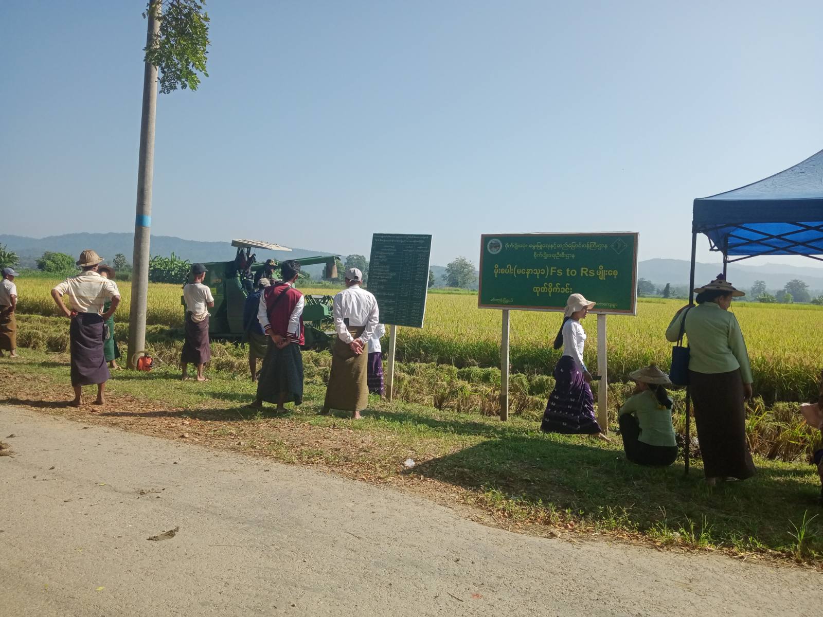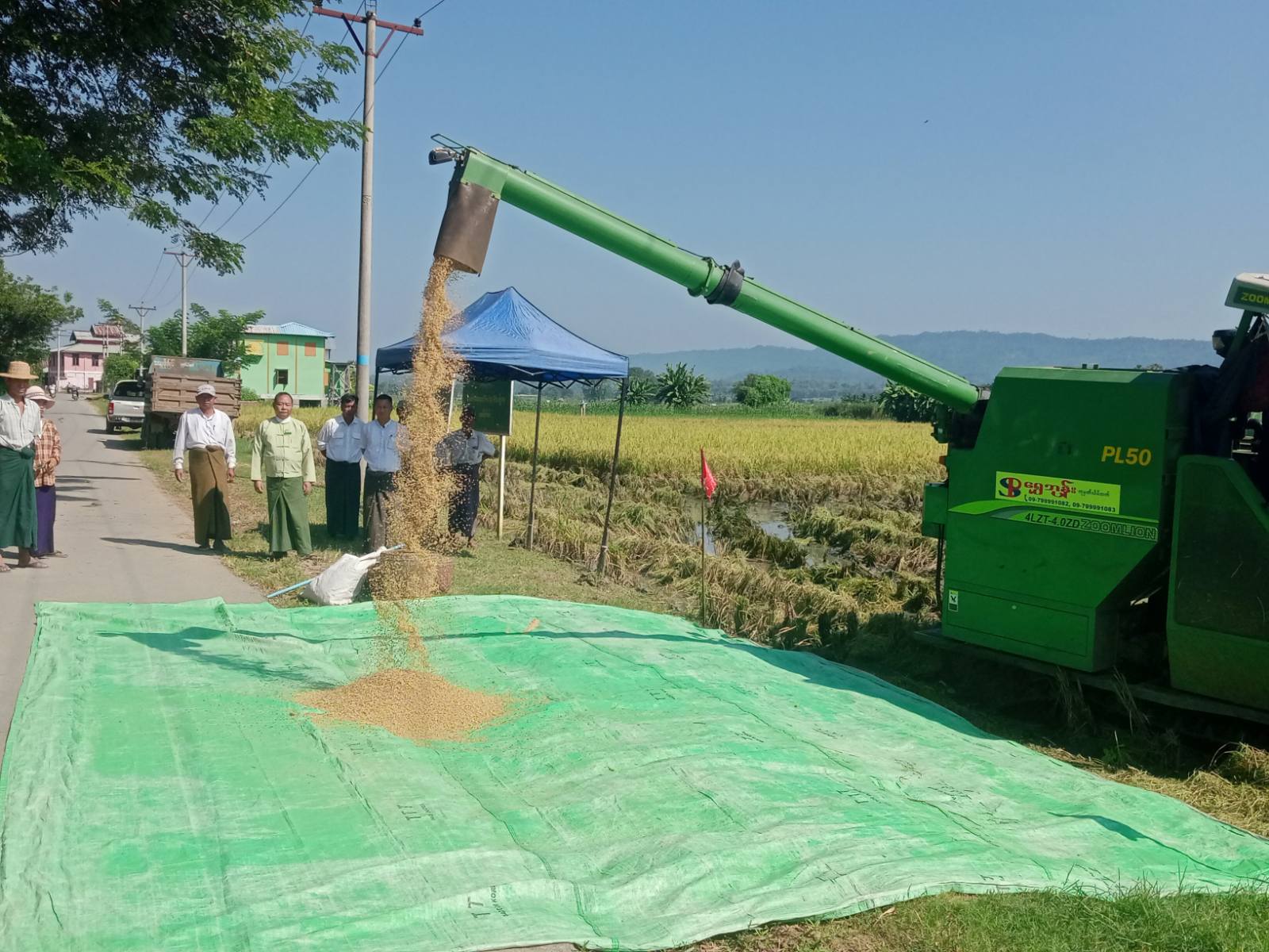 မကွေးတိုင်းဒေသကြီး မင်းတုန်းမြို့နယ် တံတားကျေးရွာရှိ တောင်သူ ဦးစိန်နိုင်၏ လယ်တွင် မြို့နယ်စိုက်ပျိုးရေးဦးစီးဌာနနှင့် အကျိုးတူပူးပေါင်းဆောင်ရွက်သည့် မိုးစပါး(မနောသုခ)Fs to Rs မျိုးစေ့ထုတ် စိုက်ခင်း (၂) ဧကကို ယမန်နေ့ နံနက် ၁၀ နာရီက စံကွက်ရိမ်သိမ်းရာ တစ်ဧကအထွက်နှုန်း အစိုထွက် (၁၀၅)တင်း ထွက်ရှိပြီး စံကွက်ရိတ်သိမ်းပွဲသို့ မြို့နယ်အုပ်ချုပ်ရေးမှူး ဦးဇော်မင်း၊ စိုက်ပျိုးရေးဦးစီးဌာန မြို့နယ်နယ်ဦးစီးမှူးနှင့် ဝန်ထမ်းများ လယ်ယာမြေစီမံခန့်ခွဲရေးဦးစီးဌာန မြို့နယ်ဦးစီးဌာနမှူးနှင့် တောင်သူများ တက်ရောက်ခဲ့ကြသည်။