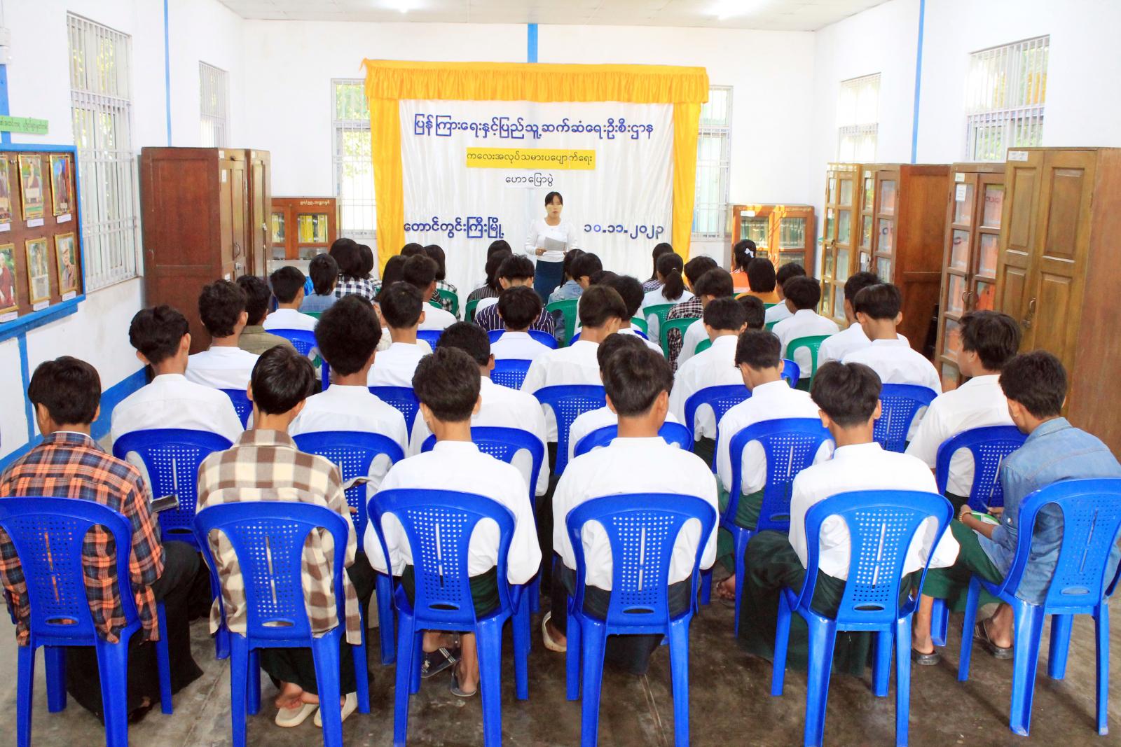 ရှေးဦးစွာ မြို့နယ်ပြန်ကြားရေးနှင့်ပြည်သူ့ဆက်ဆံရေးဦးစီးဌာနမှ ဦးစီးအရာရှိ ဒေါ်အေးမိုးမိုးမြင့်က အသိပညာပေးဟောပြောပွဲ ပြုလုပ်ပေးရခြင်းနှင့်ပတ်သက်၍ ရှင်းလင်းပြောကြားပြီး ဒုတိယဦးစီးမှူး ဒေါ်ဝင်းမေးထွန်းက ကလေးအလုပ်သမား၏ အဓိပ္ပါယ်၊ ကလေး အလုပ်သမား၏ အလုပ်ချိန်ကန့်သတ်ချက်၊ ကလေးအလုပ်သမားများ၏ အသက်အရွယ် စသည်တို့ကို အကျယ်တဝင့်ရှင်းလင်းပြောကြားခဲ့ပြီး ကျောင်းသား၊ ကျောင်းသူများအား ကလေးအလုပ်သမားပပျောက်ရေး အသိပညာပေး လက်ကမ်းစာစောင်များကို ဖြန့်ဝေပေးခဲ့သည်။
