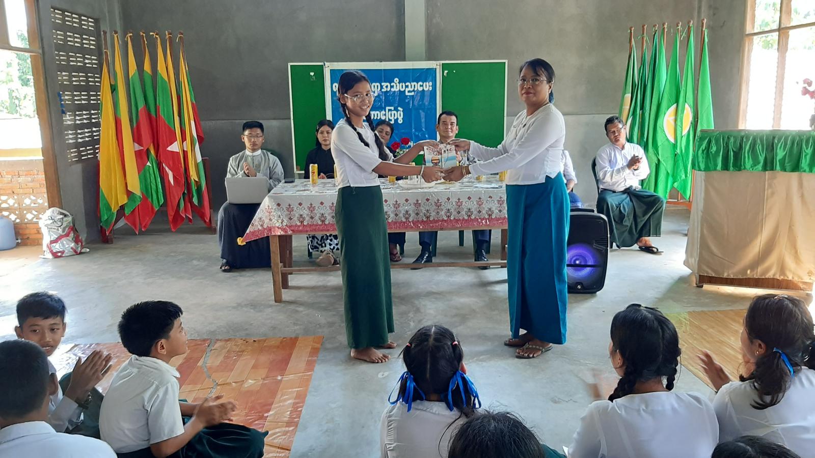 ထို့နောက် ဟောပြောပေးသည့် အကြောင်းအရာအလိုက် ပြန်လည်မေးမြန်းခဲ့ရာ အဖြေမှန်သည့် ကျောင်းသား၊ကျောင်းသူများအား တာဝန်ရှိသူများက ဆုများ ချီးမြှင့်ပေးပြီး ကလေးအလုပ်သမား ပပျောက်ရေး စွန့်ပစ်ပစ္စည်း စနစ်တကျ စီမံခန့်ခွဲမှုနှင့် လူကုန်ကူးမှုကာကွယ်ရေး အသိပညာပေး လက်ကမ်းစာစောင်များ အခမဲ့ ဖြန့်ဝေပေးခြင်းနှင့် နံရံကပ်စာစောင် ပြသပေးခြင်းများ ဆောင်ရွက်ခဲ့ကြောင်း သိရသည်။
