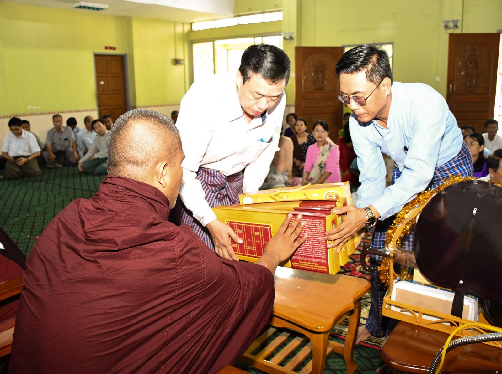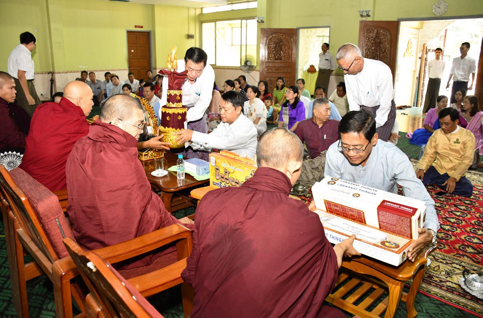ထို့နောက် ဆရာတော်၊ သံဃာတော်များကို ပြန်ကြားရေးဝန်ကြီးဌာန (ရန်ကုန်မိသားစု)များက နေ့ဆွမ်းဆက်ကပ် လှူဒါန်းခဲ့သည်။